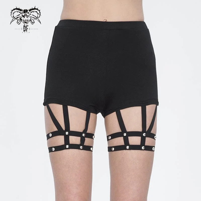 VenditaScegli Questo prodotto ha più varianti. Le opzioni possono essere scelte nella pagina del prodottoPantaloncini punk asimmetrici con rivetti e cinturino per la gamba da donna