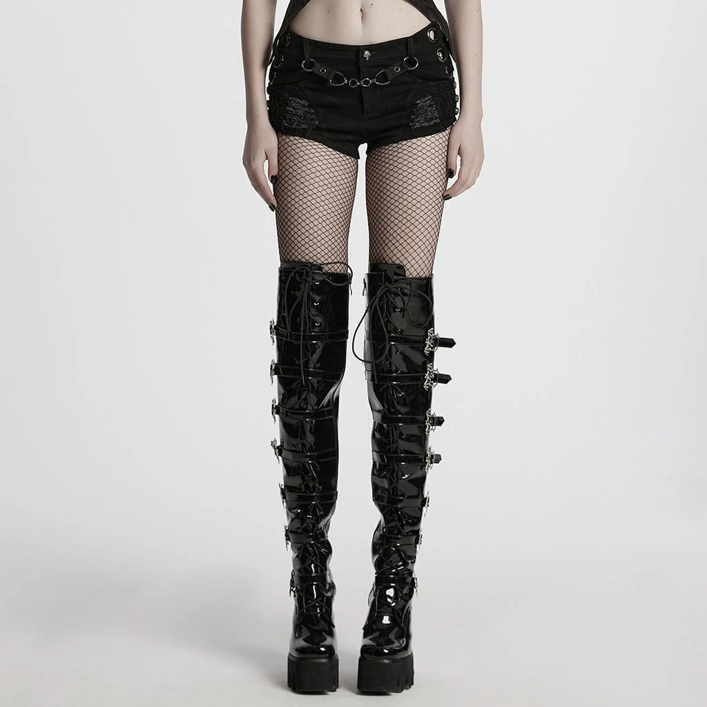 VenditaScegli Questo prodotto ha più varianti. Le opzioni possono essere scelte nella pagina del prodottoPantaloncini in rete con giunzione con fibbie punk da donna