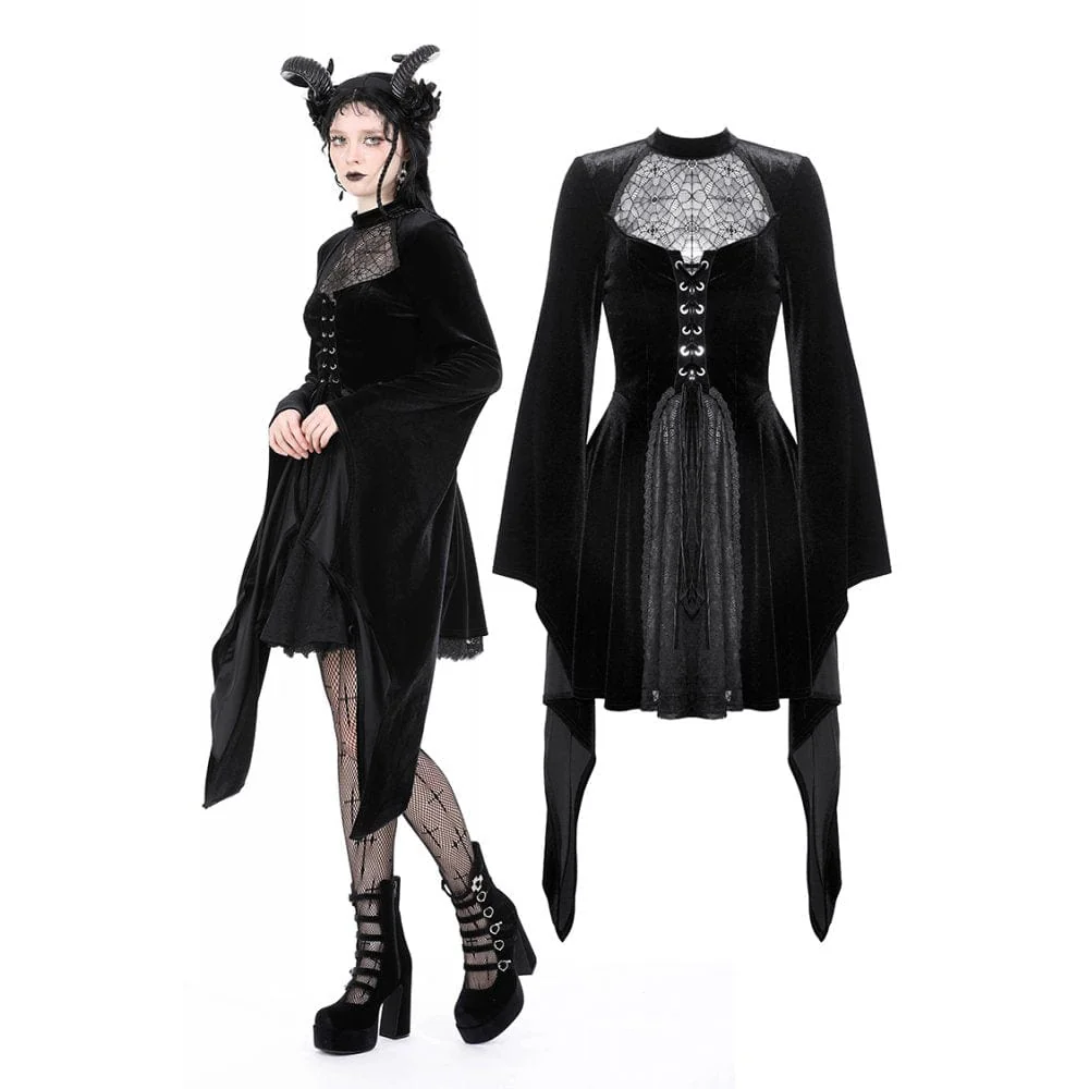 VenditaScegli Questo prodotto ha più varianti. Le opzioni possono essere scelte nella pagina del prodottoAbito da sposa in velluto con giunture in rete a ragno con maniche svasate gotiche da donna