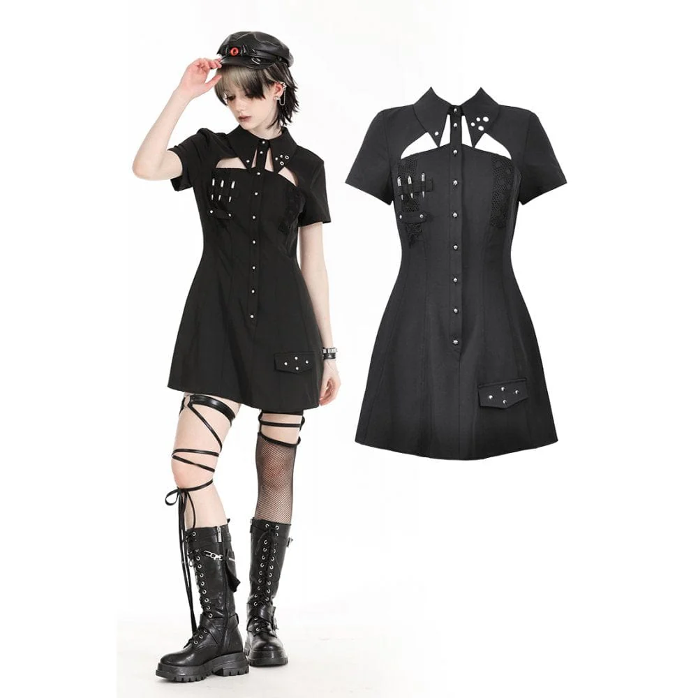 VenditaScegli Questo prodotto ha più varianti. Le opzioni possono essere scelte nella pagina del prodottoAbito da sposa da donna con scollo all’americana, cinturino e catena con rivetti punk