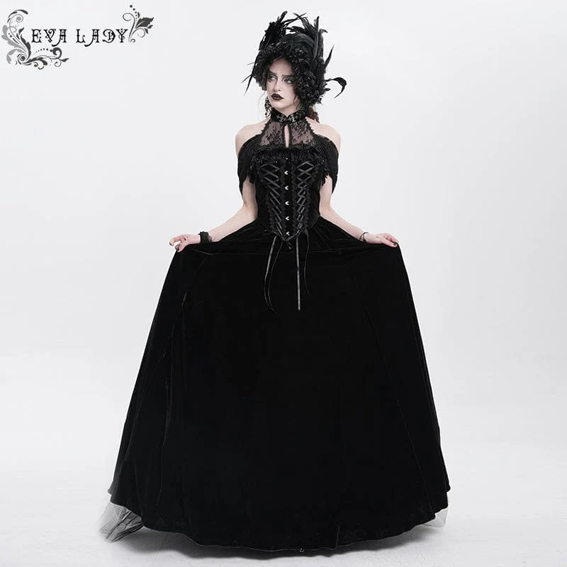 VenditaScegli Questo prodotto ha più varianti. Le opzioni possono essere scelte nella pagina del prodottoAbito da sposa in velluto con lacci e spalle scoperte in stile gotico da donna