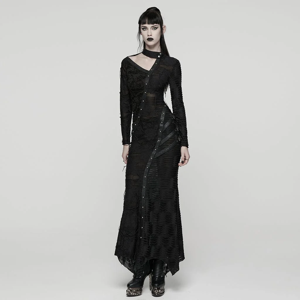 VenditaScegli Questo prodotto ha più varianti. Le opzioni possono essere scelte nella pagina del prodottoAbito da sposa da donna con maniche lunghe, spalline e fibbia, stile punk, con strappi e ritagli