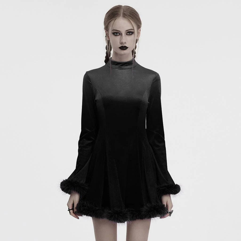 VenditaScegli Questo prodotto ha più varianti. Le opzioni possono essere scelte nella pagina del prodottoAbito da donna in velluto con collo alto e polsini in pelliccia, stile gotico, nero