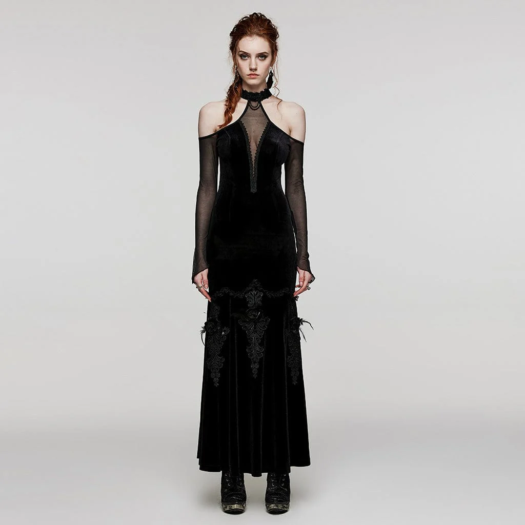 VenditaScegli Questo prodotto ha più varianti. Le opzioni possono essere scelte nella pagina del prodottoAbito da donna in velluto con giunture in rete con spalle scoperte gotiche