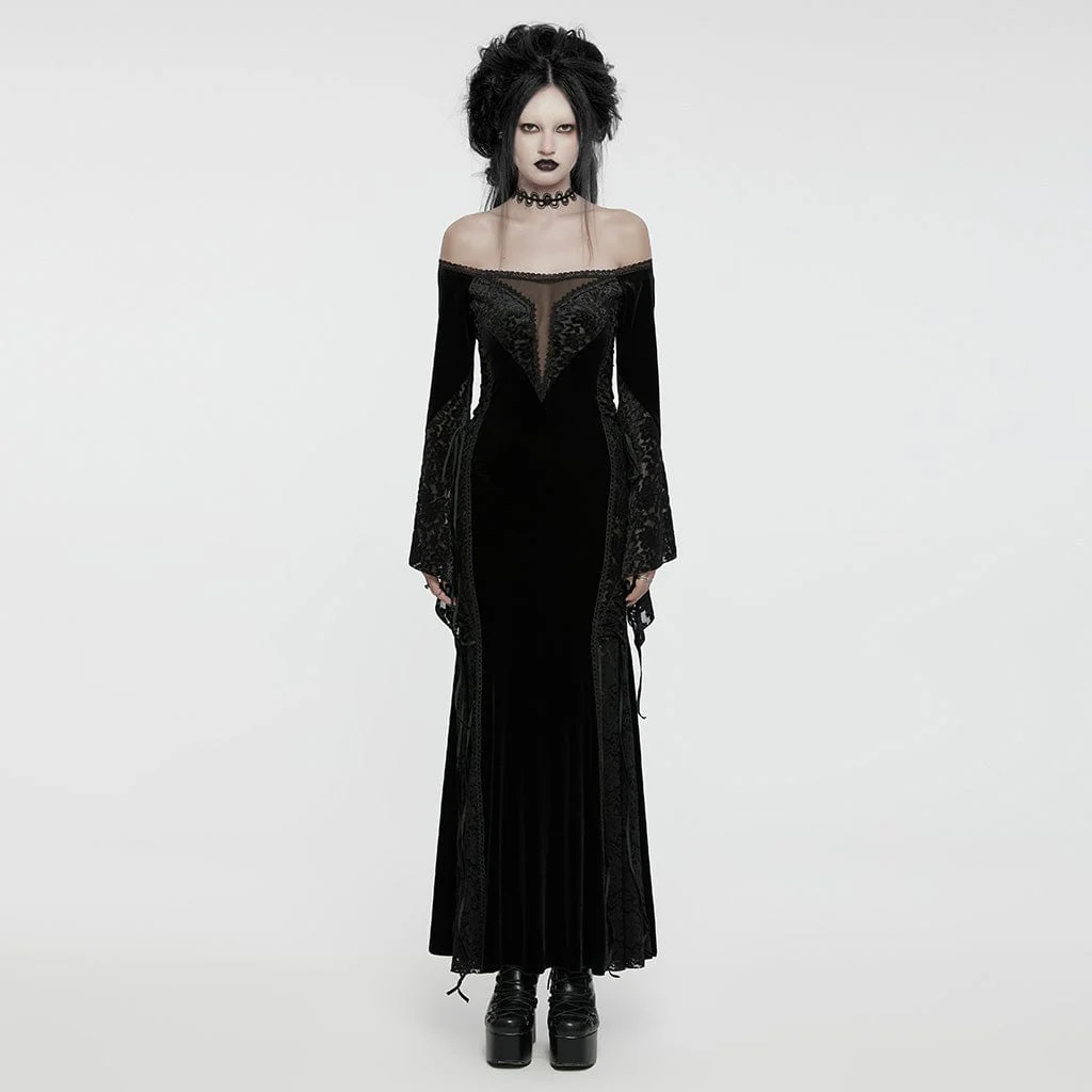 VenditaScegli Questo prodotto ha più varianti. Le opzioni possono essere scelte nella pagina del prodottoAbito da donna in velluto con giunture in pizzo e spalle scoperte in stile gotico