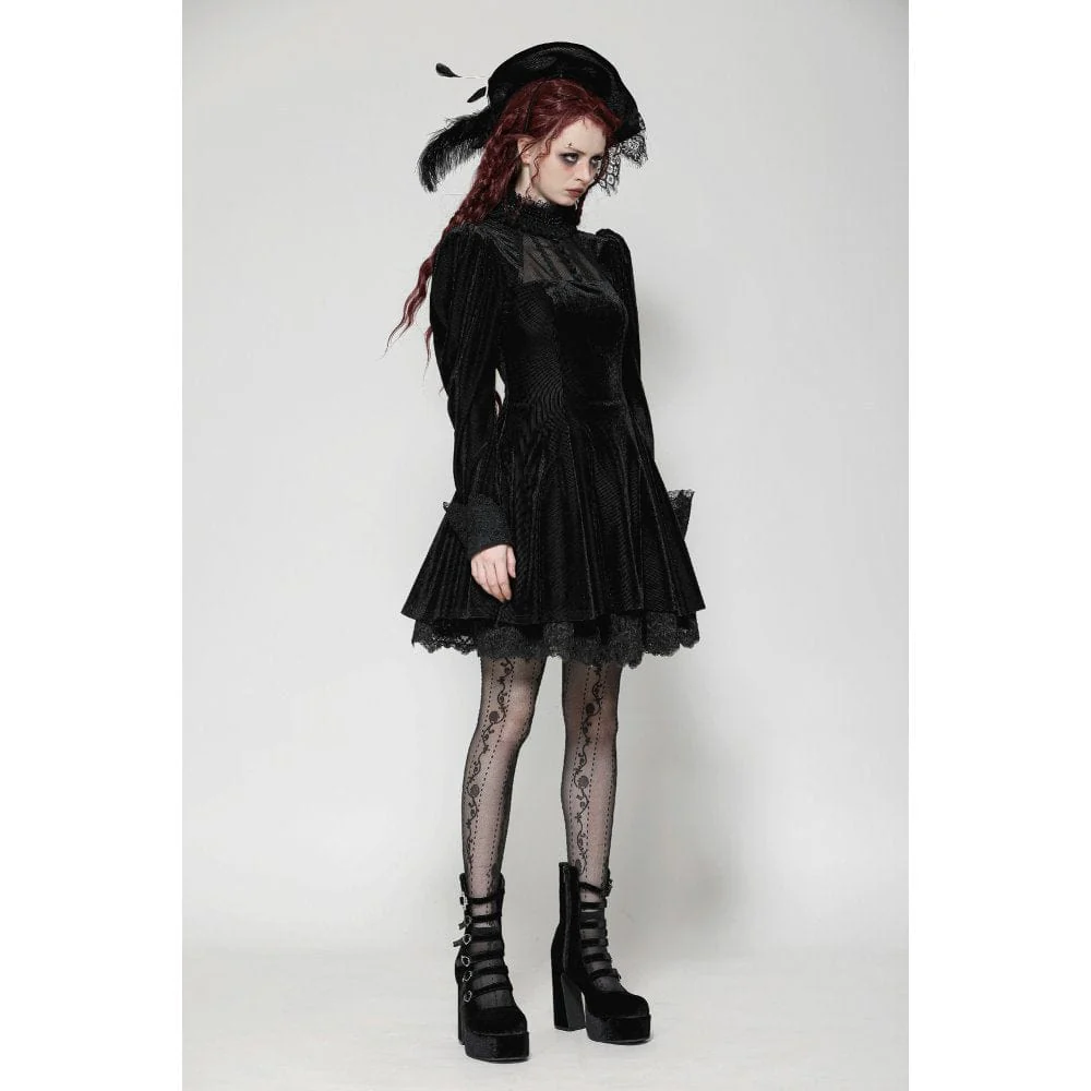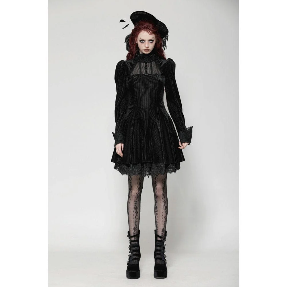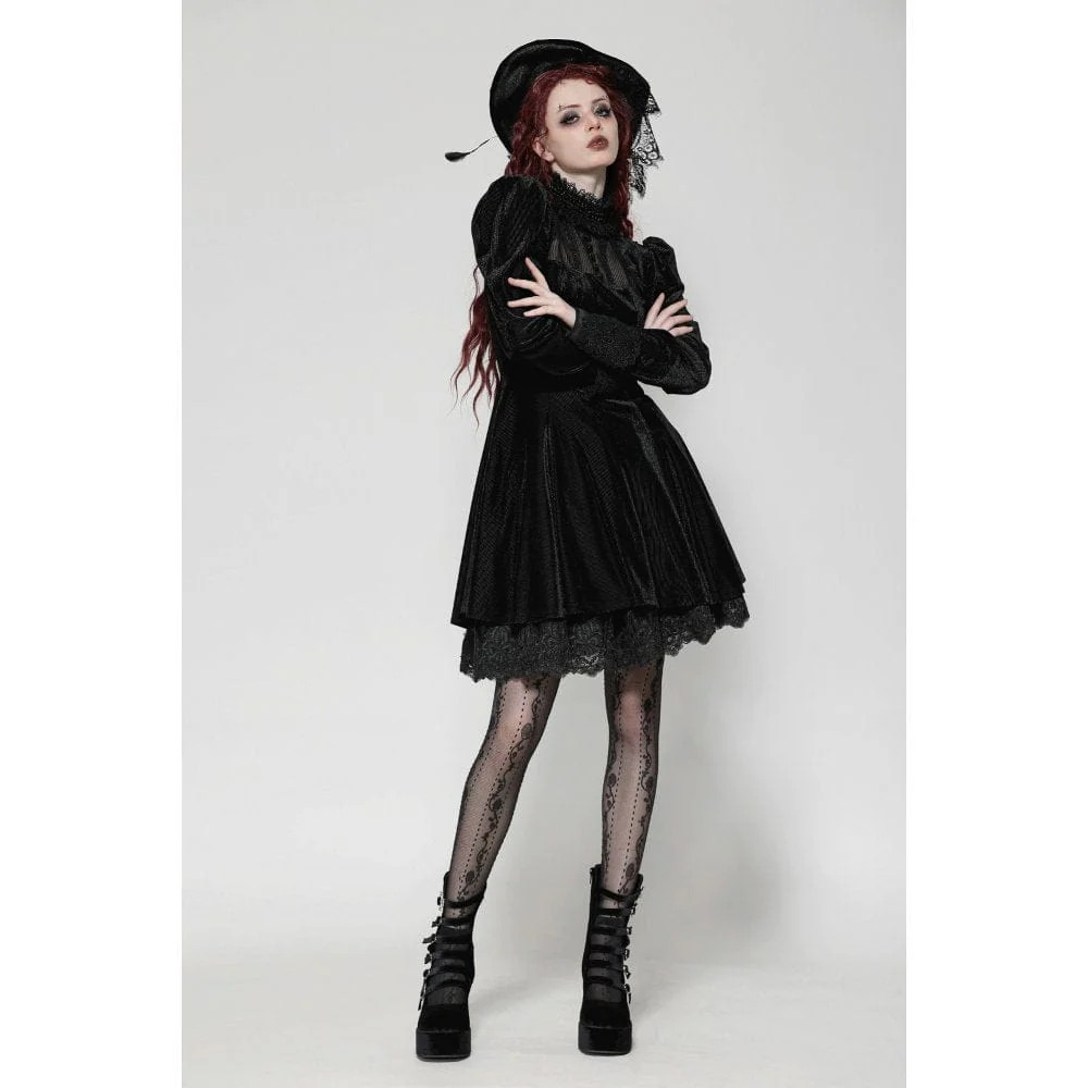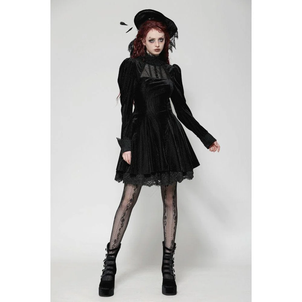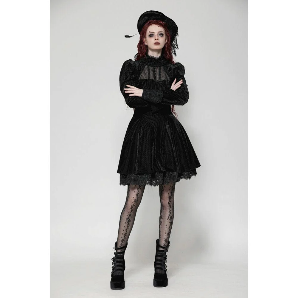 L’abito da ballo in velluto con maniche a sbuffo gotico da donna è un capo sbalorditivo che unisce la raffinatezza dark all’eleganza vintage, rendendolo la scelta perfetta per chi cerca un look regale e misterioso. Realizzato in velluto a righe, il tessuto emana una texture ricca e lussuosa che cattura la luce a ogni movimento, esaltando il fascino gotico dell’abito.