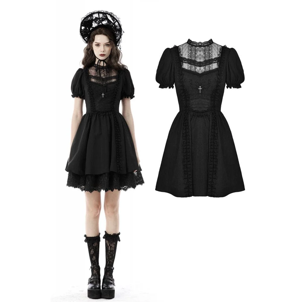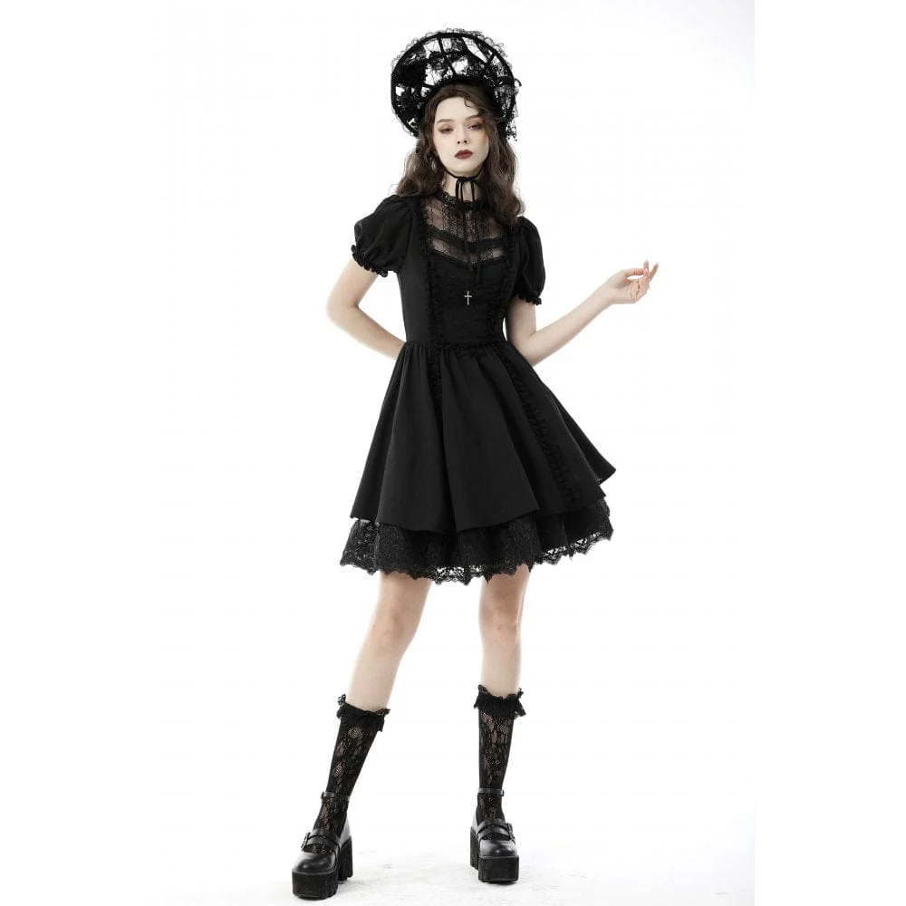 Abito da bambola in pizzo con maniche a sbuffo in stile gotico Lolita da donna