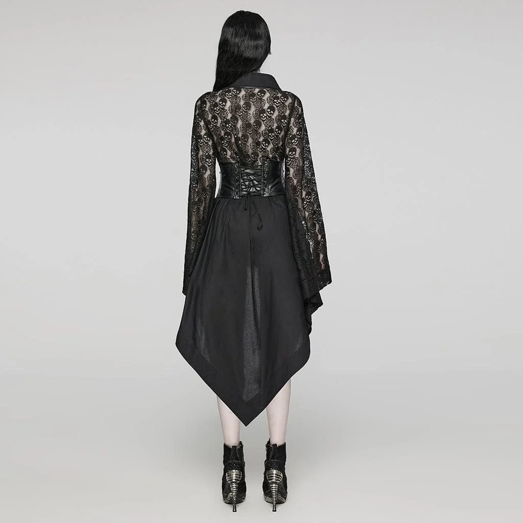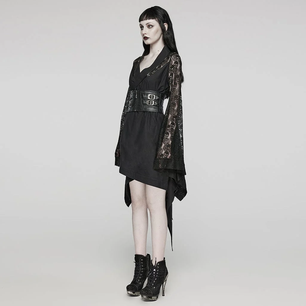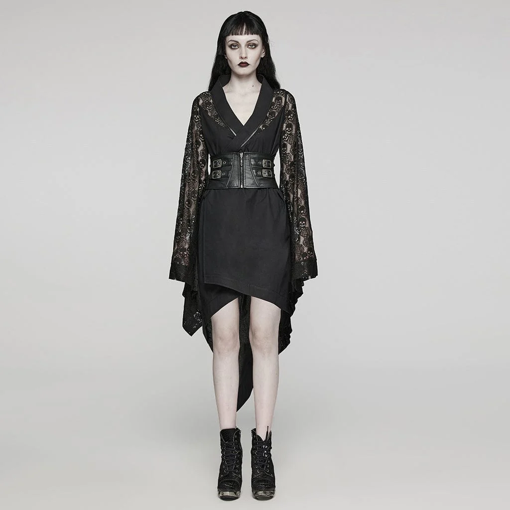 Abito da donna a maniche lunghe irregolare con fibbia in pizzo punk