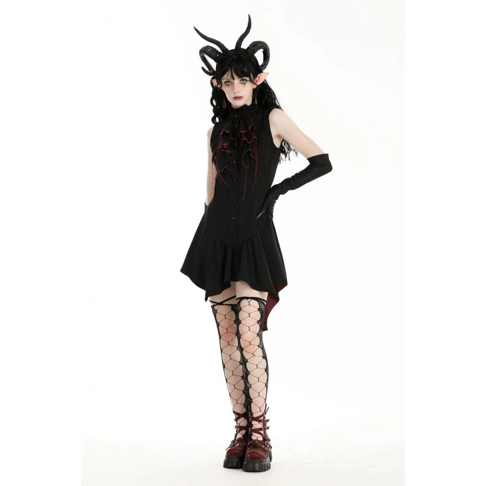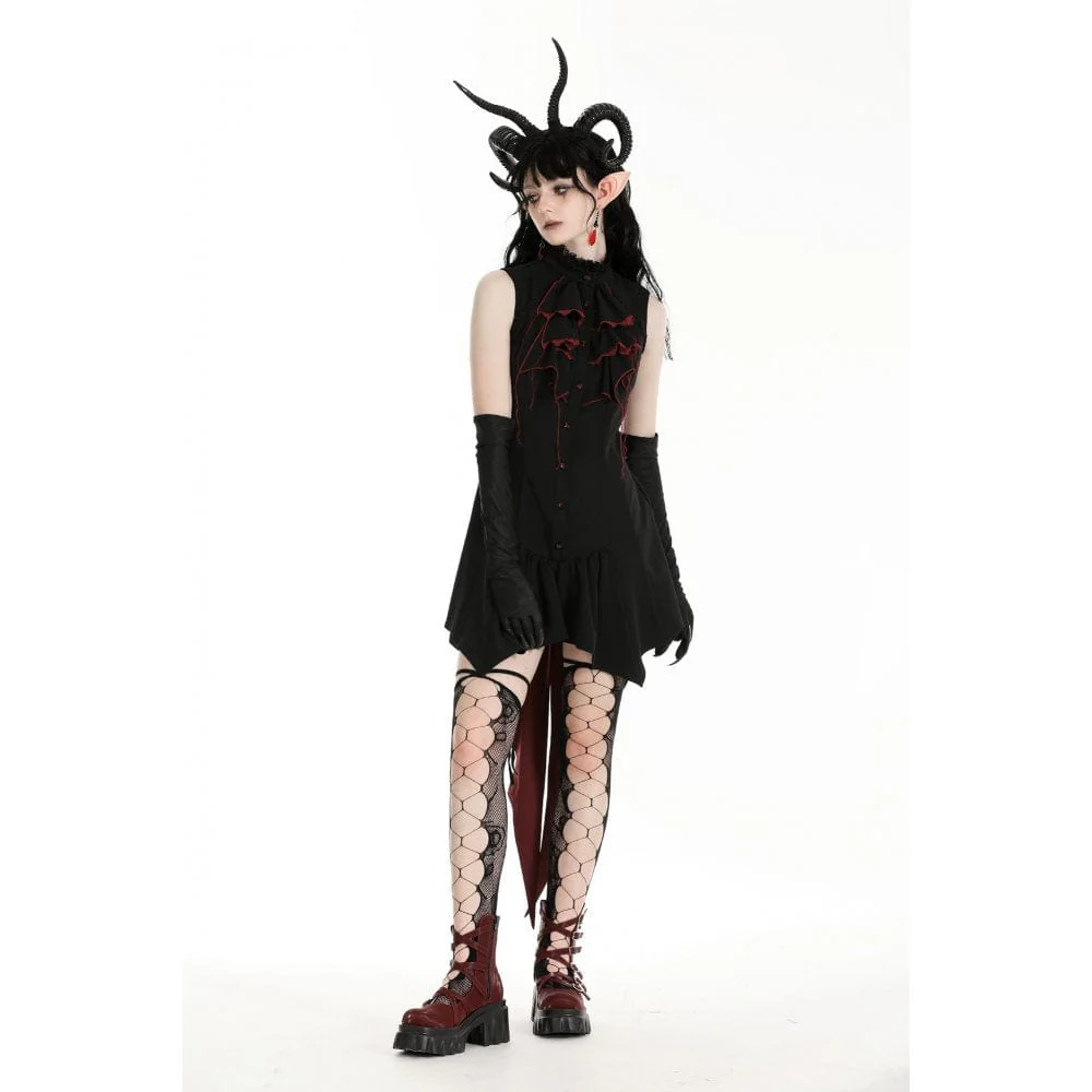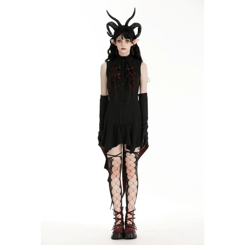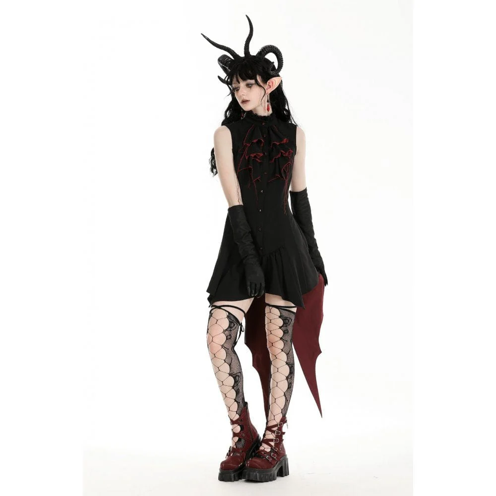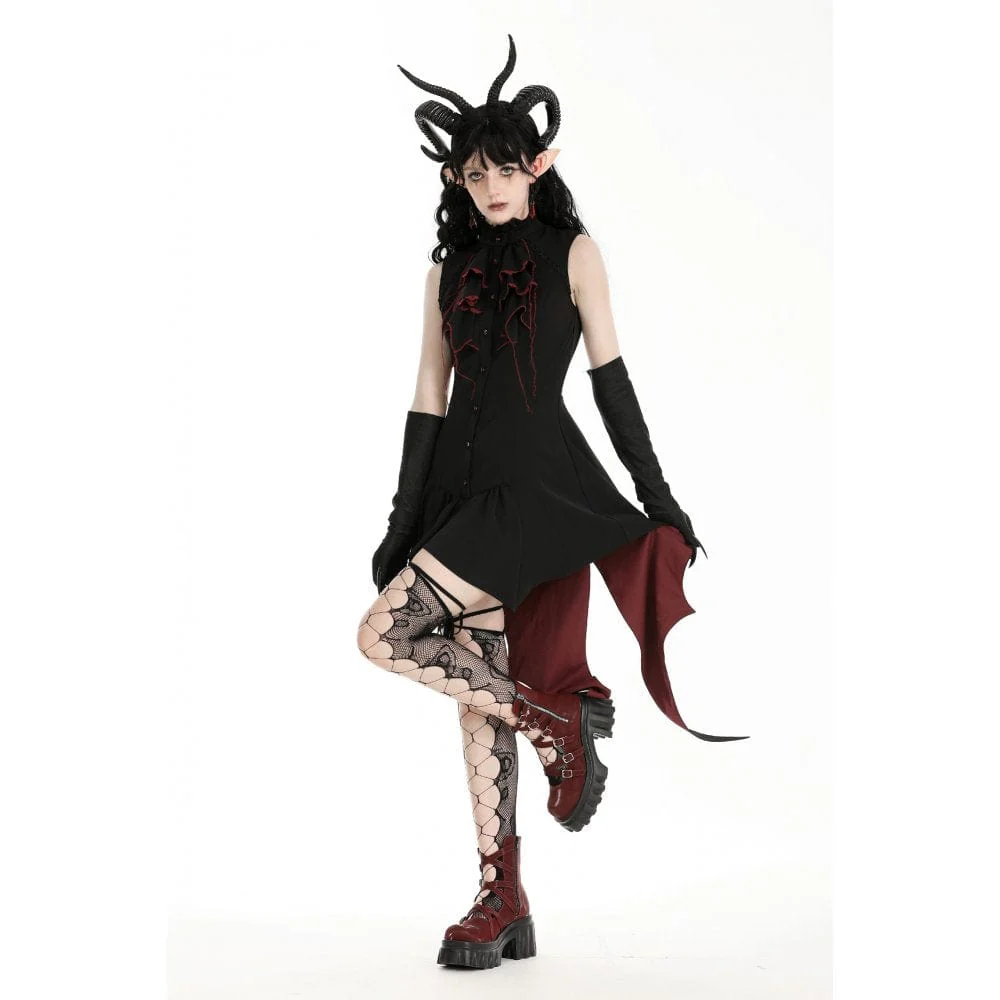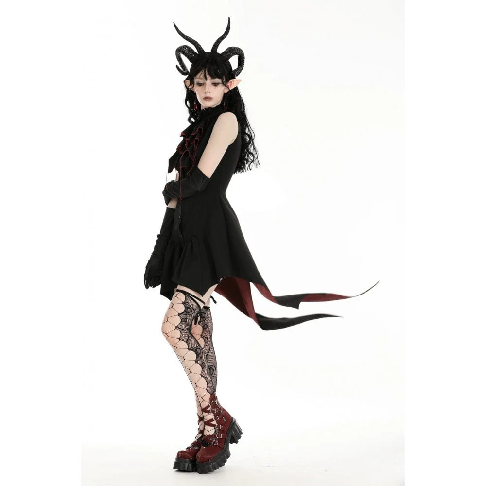 L’orlo del vestito ha una forma irregolare, ispirata alle ali di pipistrello, che aggiunge un tocco stravagante e gotico. Questo elemento di design unico non solo aggiunge fascino al vestito, ma fornisce anche un movimento fluido ed etereo ad ogni passo che fai.