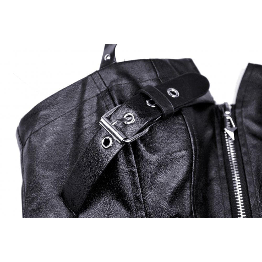 Abito da donna in ecopelle con scollo all’americana con zip frontale punk