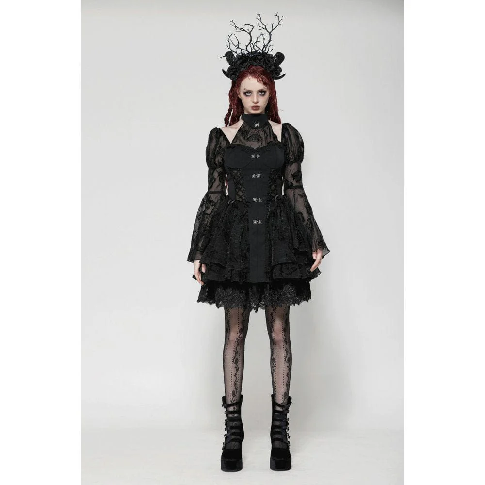Il vestito da laurea a palloncino con maniche a sbuffo Gothic Lolita da donna è una straordinaria miscela di elementi gotici stravaganti e audaci, progettato per fare colpo. Realizzato in rete a farfalla, questo vestito presenta una scollatura alta splendidamente decorata con una farfalla argentata, che aggiunge un delicato luccichio al design.