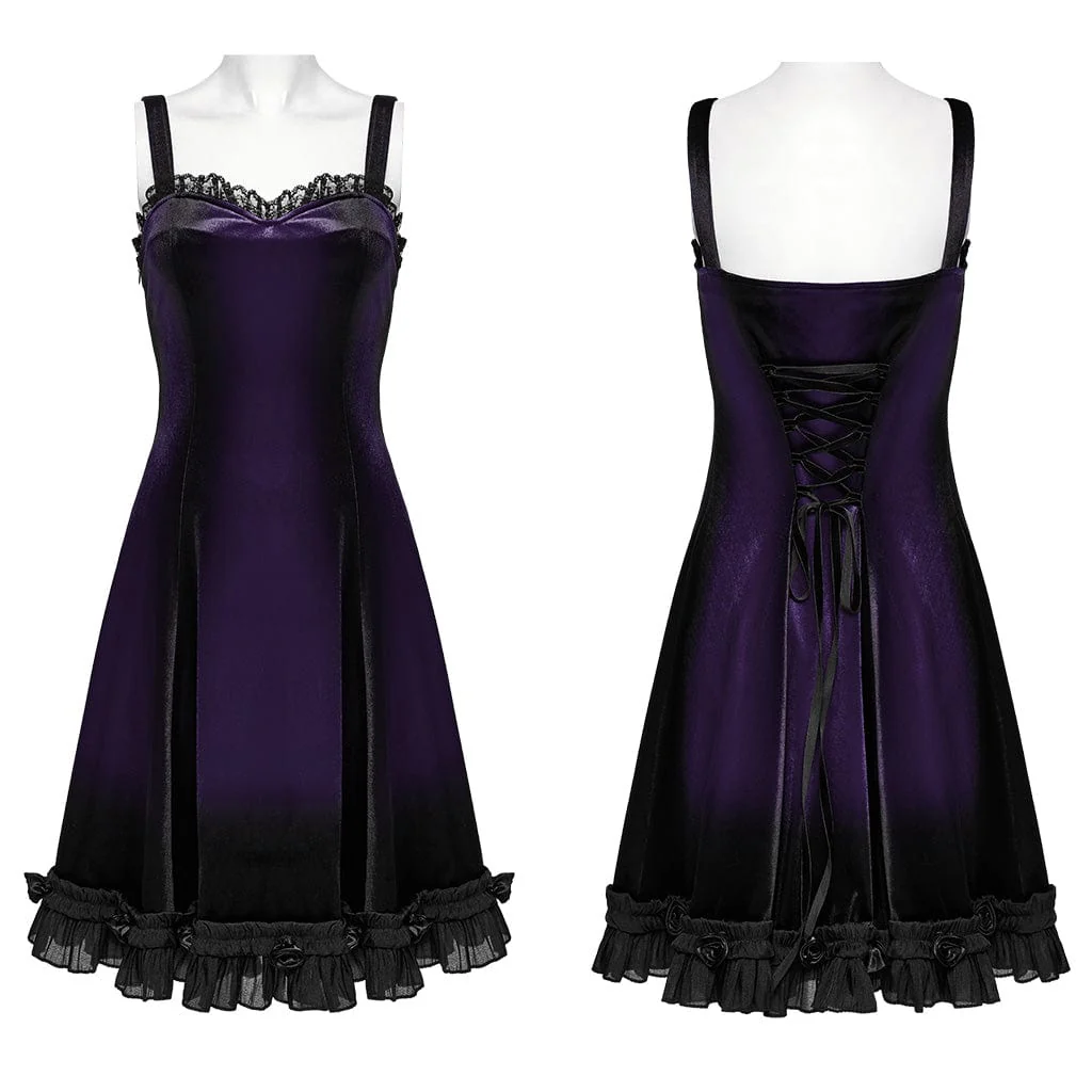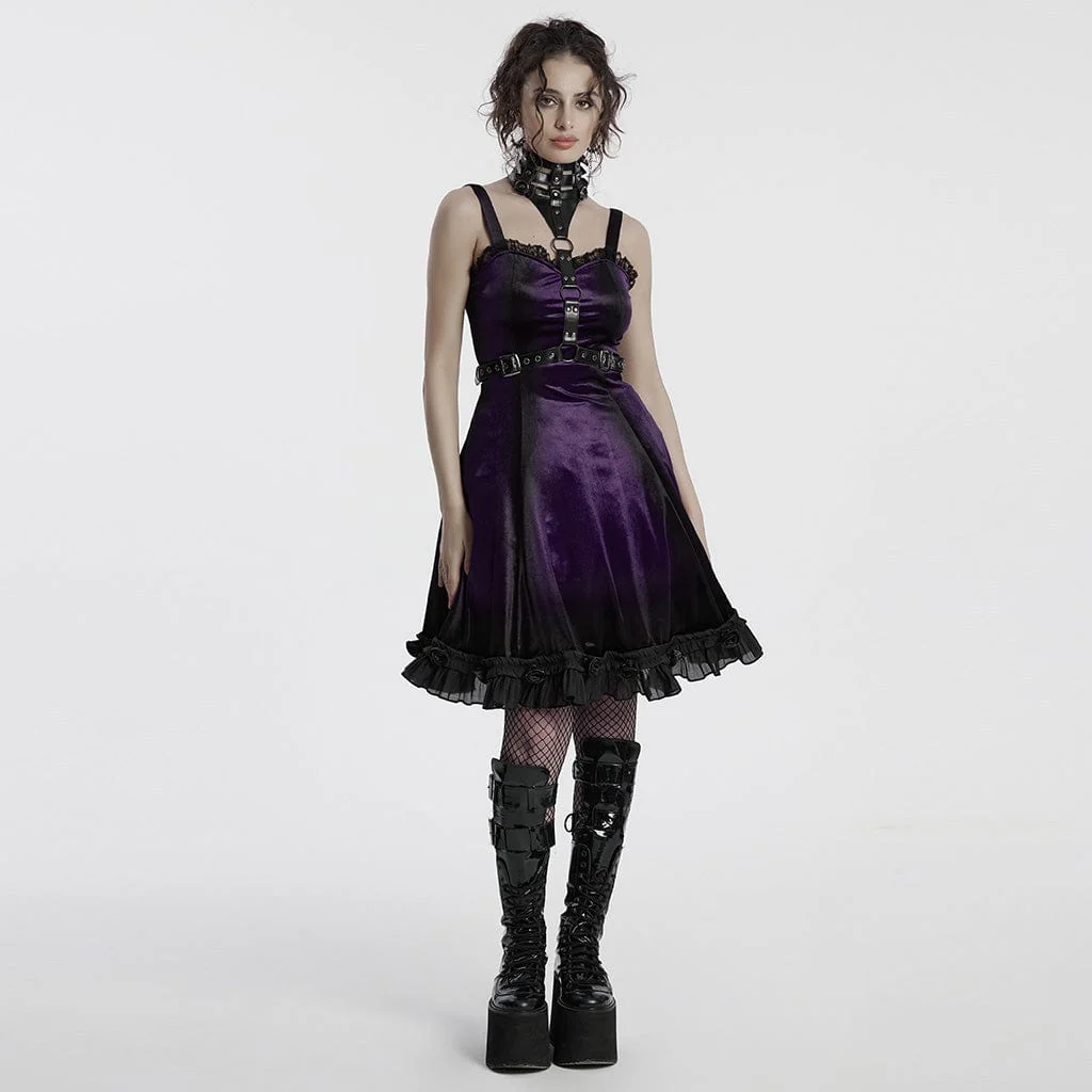 Con elementi pratici come una cerniera laterale in vita e una vita regolabile, questo vestito offre una vestibilità perfetta e personalizzabile. Disponibile in due colori accattivanti, il Gothic Ruffled Lace Splice Gradient Velvet Slip Dress è l’epitome della bellezza gotica, perfetto per coloro che vogliono fare una dichiarazione audace ma elegante. Che tu stia partecipando a un ballo gotico, a un evento speciale o semplicemente assecondando il tuo amore per la moda dark, questo vestito attirerà sicuramente l’attenzione e ruberà la scena.