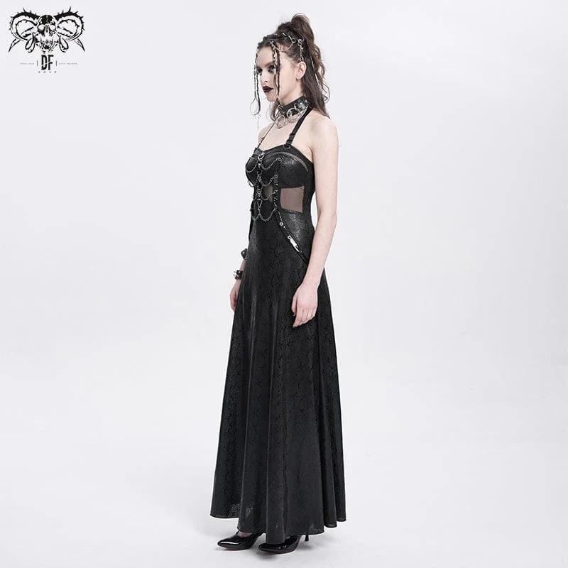 Realizzato in un mix di rete, similpelle e tessuto morbido, questo abito è comodo e sorprendente, ideale per matrimoni gotici, eventi di moda alternativa, concerti o una serata di dark romanticismo.