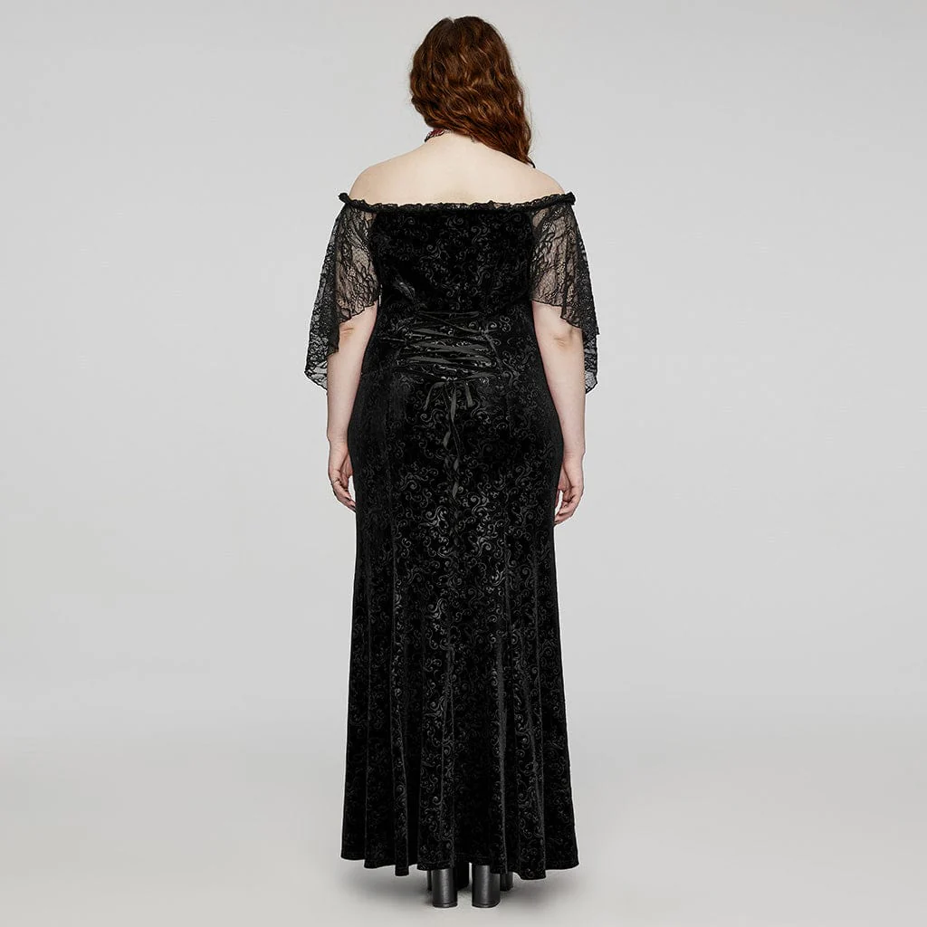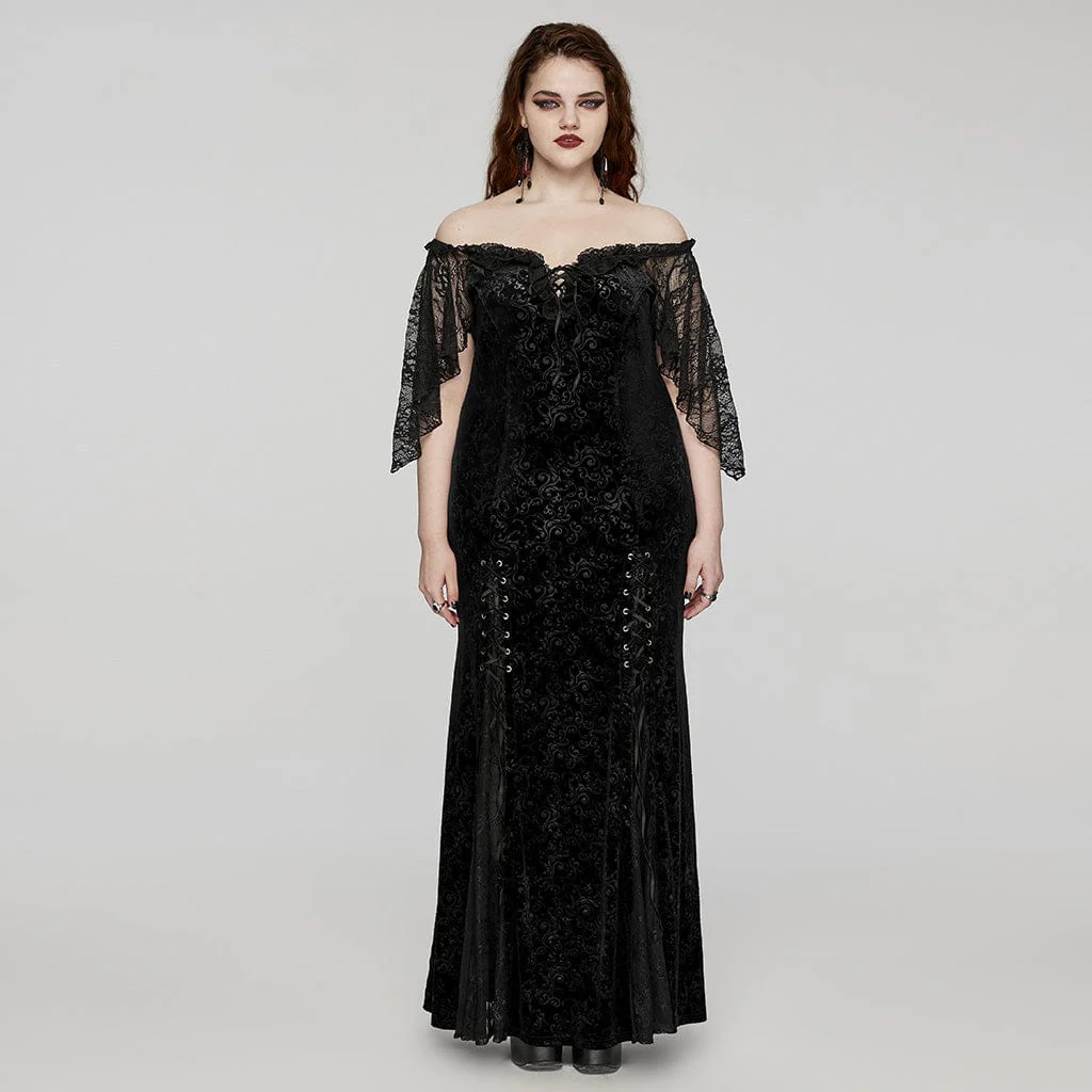 Immergiti nell’eleganza oscura e nel fascino romantico del nostro abito da donna in velluto gotico con spalle scoperte e lacci. Questa squisita creazione è una miscela armoniosa di texture lussuose, intricati dettagli in pizzo ed elementi di design senza tempo, che la rendono un’aggiunta accattivante al tuo guardaroba.