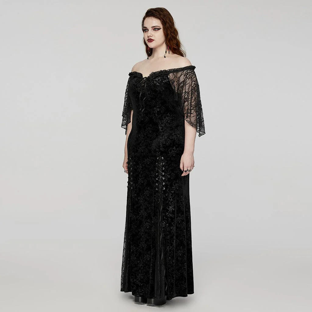 Che tu stia partecipando a un evento a tema gotico, una serata formale o semplicemente abbracciando il tuo stile unico, questo abito con spalle scoperte è un capo di tendenza che trasuda un’eleganza oscura e un fascino innegabile. Migliora il tuo look e affascina i tuoi cuori con questo incantevole completo.