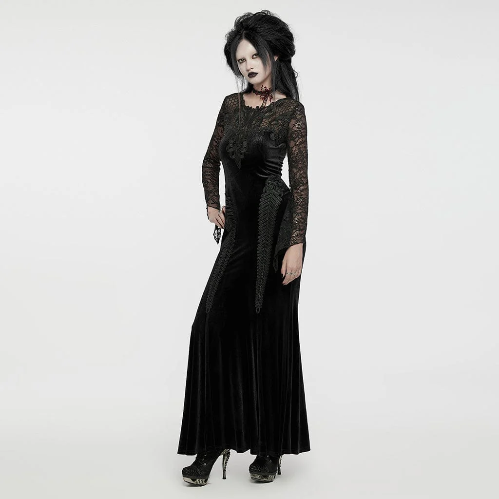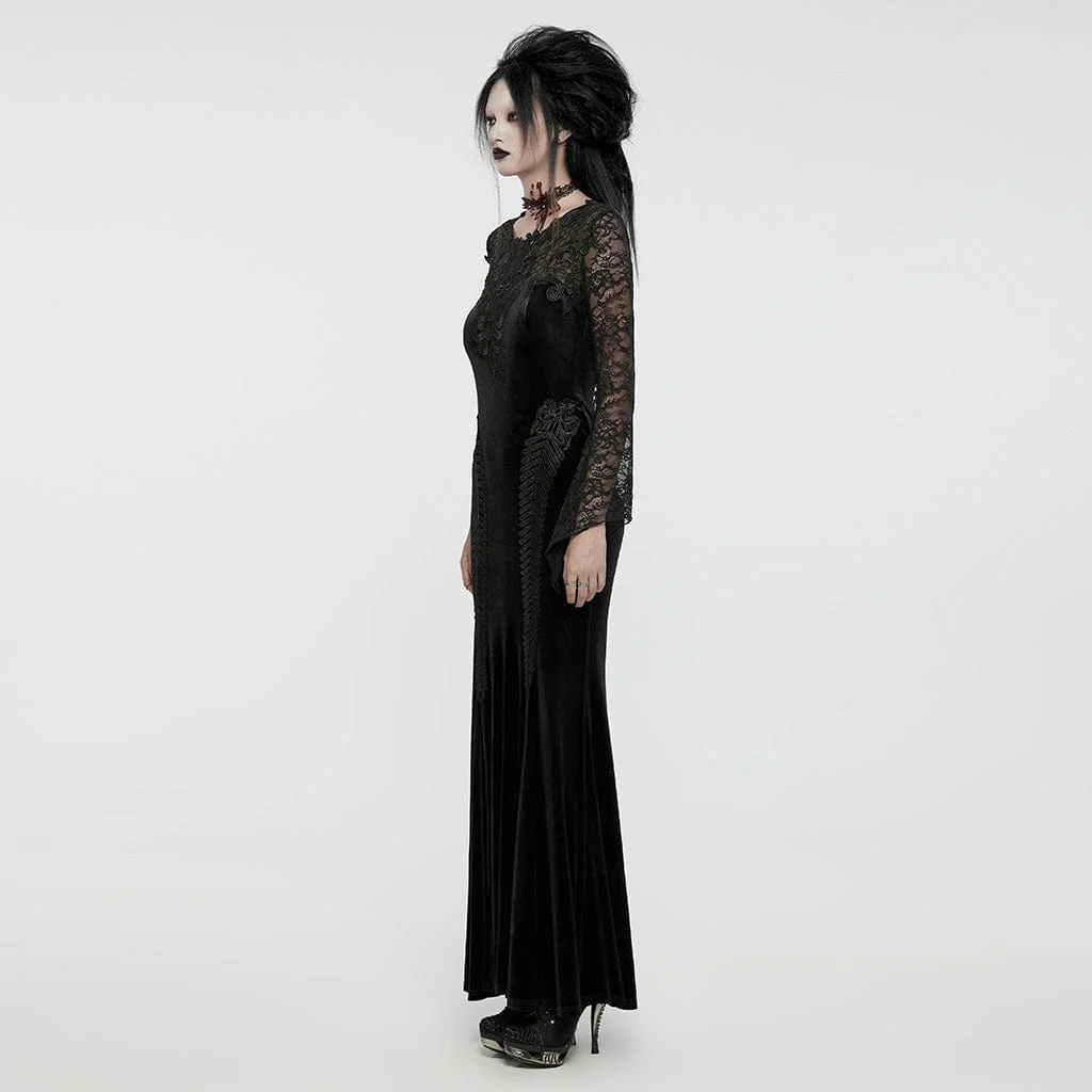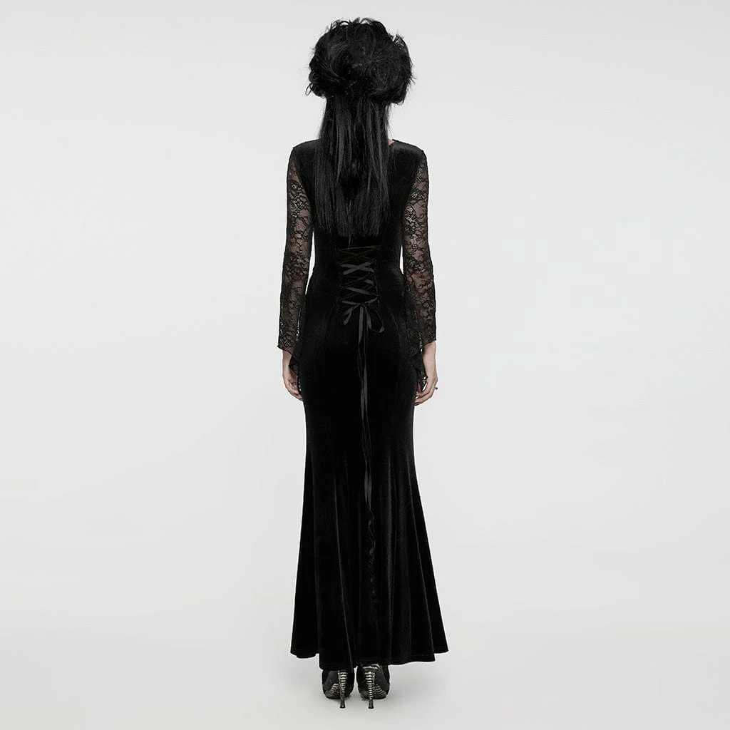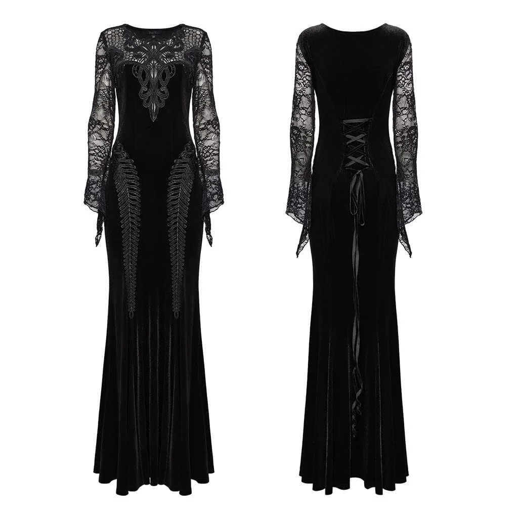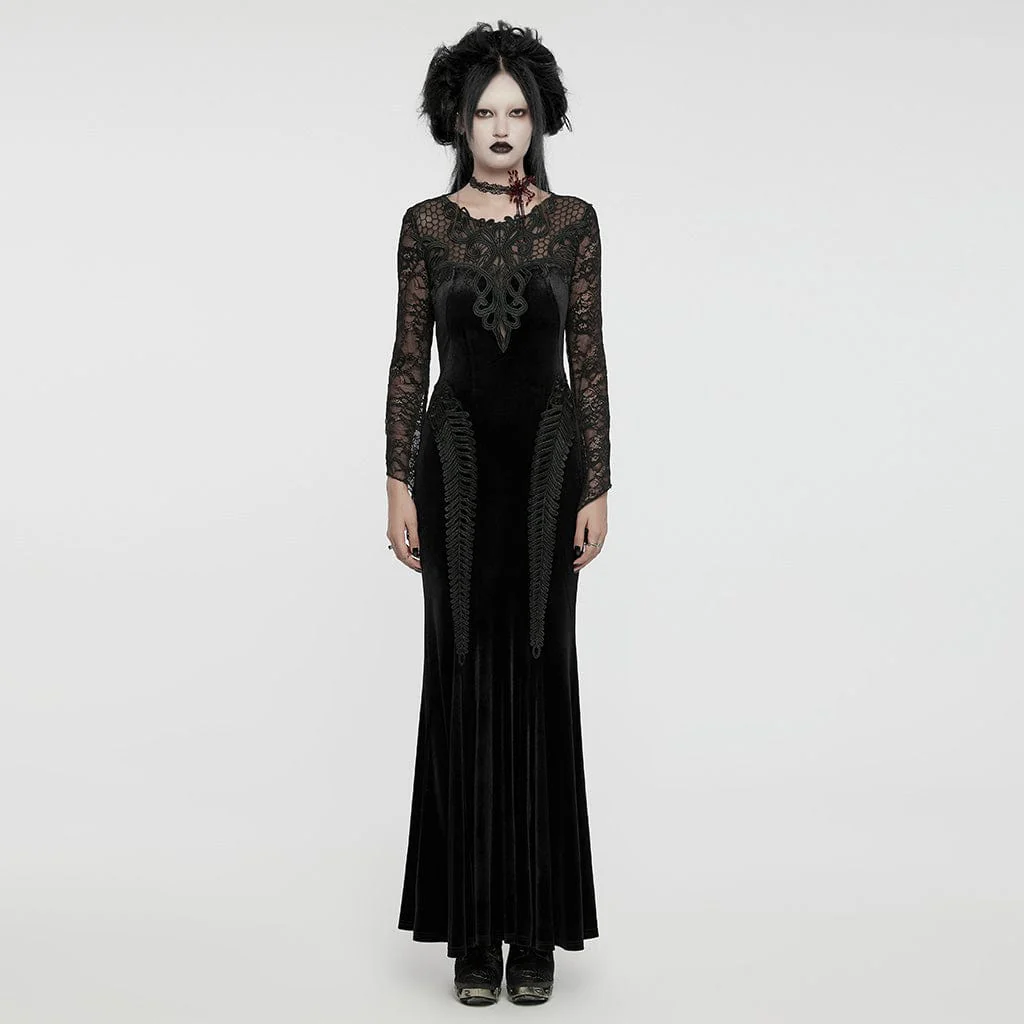 Prova l’apice della raffinatezza gotica con il Women’s Gothic Lace Splice Velvet Fishtailed Prom Dress, una creazione sbalorditiva pensata per catturare e incantare. Questo abito è sapientemente realizzato in ricco velluto elastico, abbinato a una delicata rete floreale per creare una texture lussuosa che è sia seducente che confortevole.