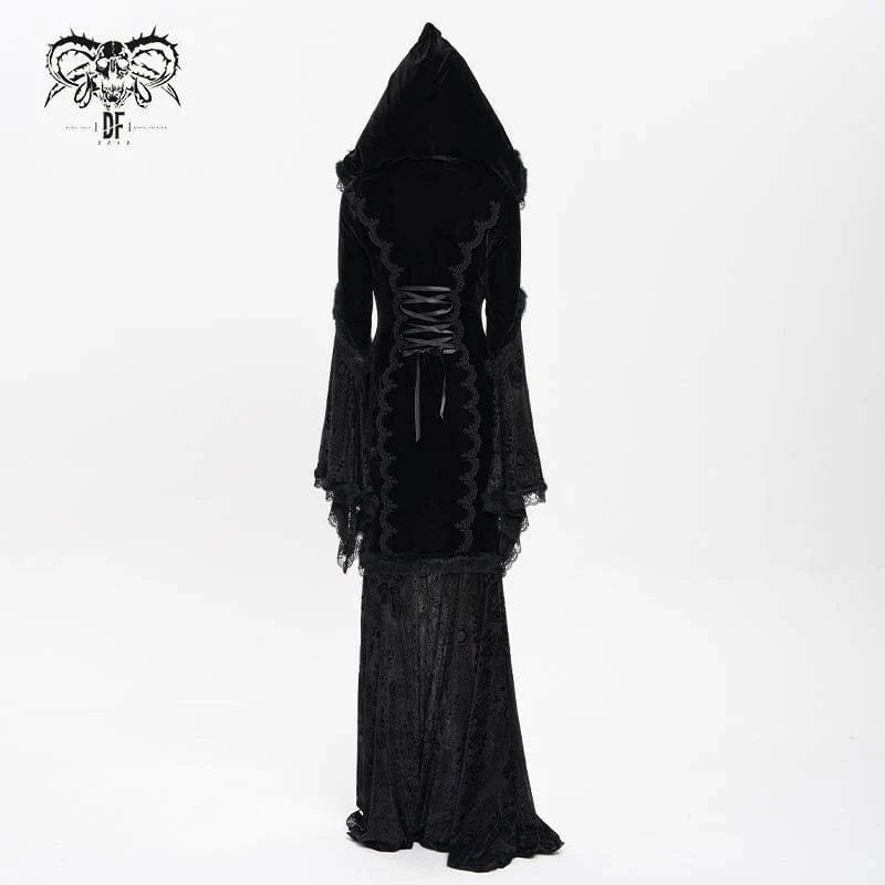 Il design con cappuccio emana un alone mistico, simile a quello di un mantello, evocando un messaggero notturno di tradizione gotica. Muovendosi, l’ombra del cappuccio si fonde con le sue linee a cascata, amplificando l’aura oscura e rituale, trasmettendo un’atmosfera distaccata, “incontaminata dal caos mortale”.