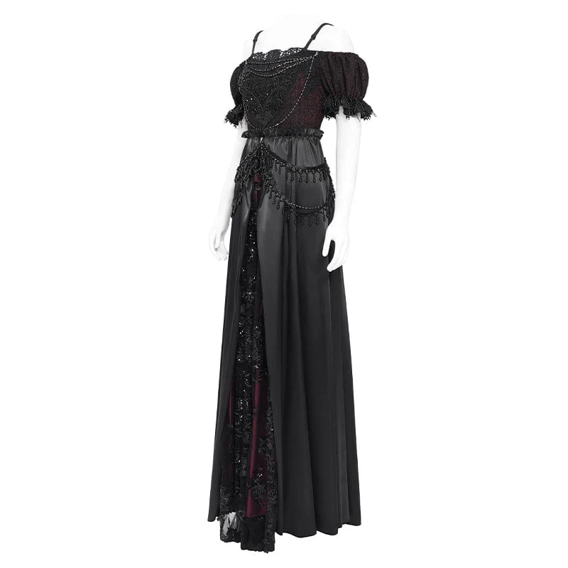 Entra nel mondo del romanticismo dark con questo abito da ballo da donna in pizzo con spalle scoperte gotico, una fusione mozzafiato di gotico vittoriano ed eleganza stregata. Progettato per coloro che abbracciano l’estetica grunge gotica, questo abito trasuda mistero e raffinatezza con la sua scollatura a spalle scoperte, ornata da delicati bordi in pizzo e sottili abbellimenti di perline.