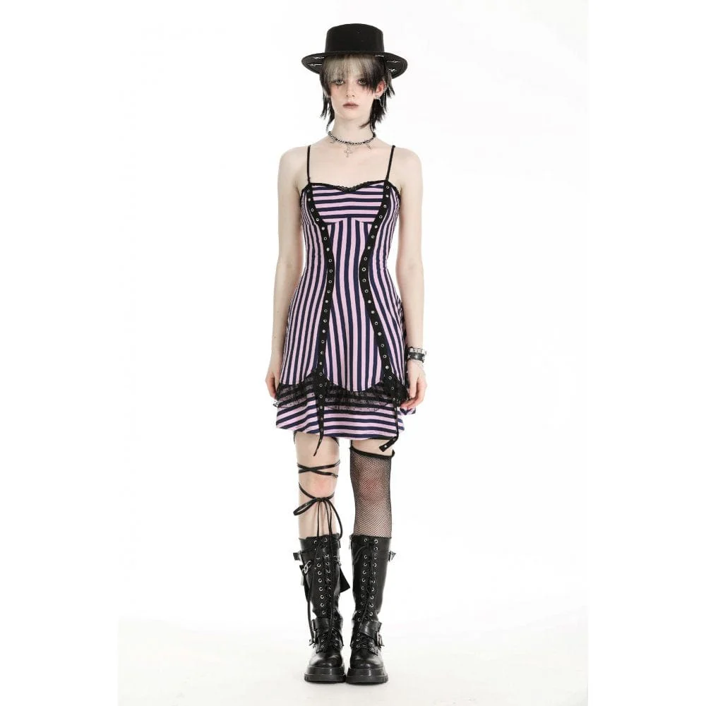 Abito slip da festival musicale a righe in colore punk a contrasto da donna