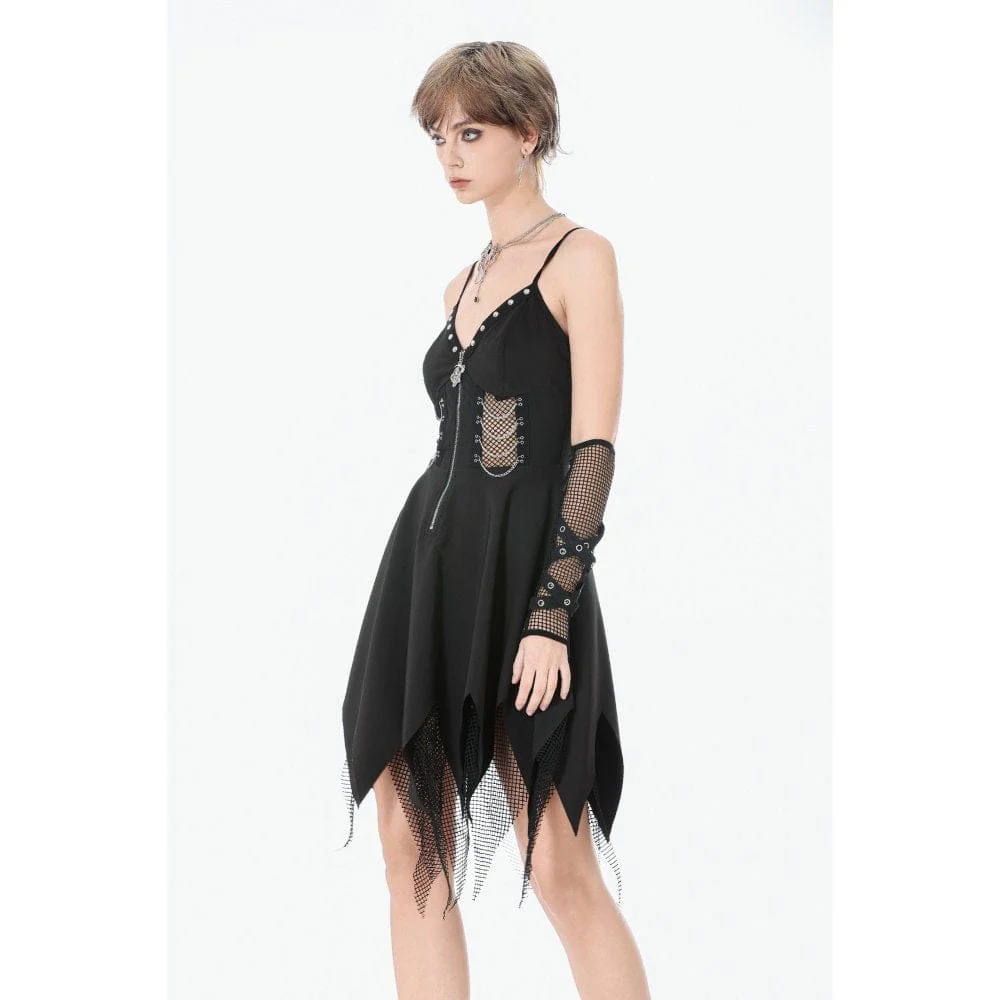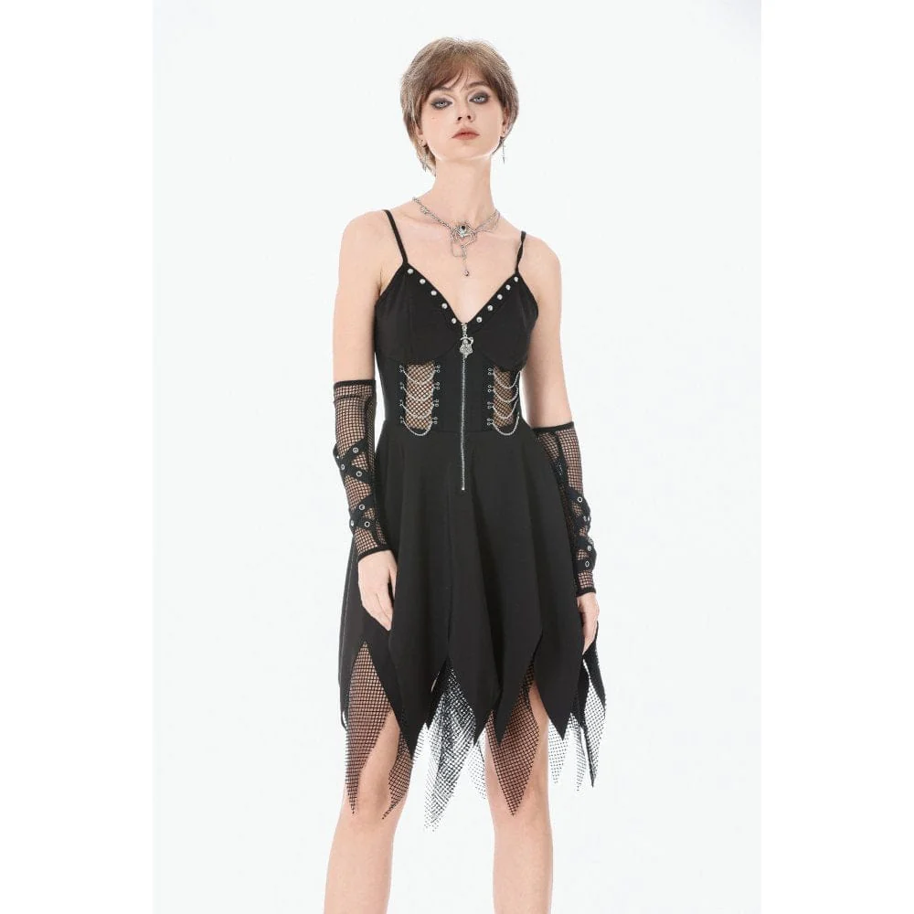 Abito sottoveste con catena e rivetti in rete punk da donna