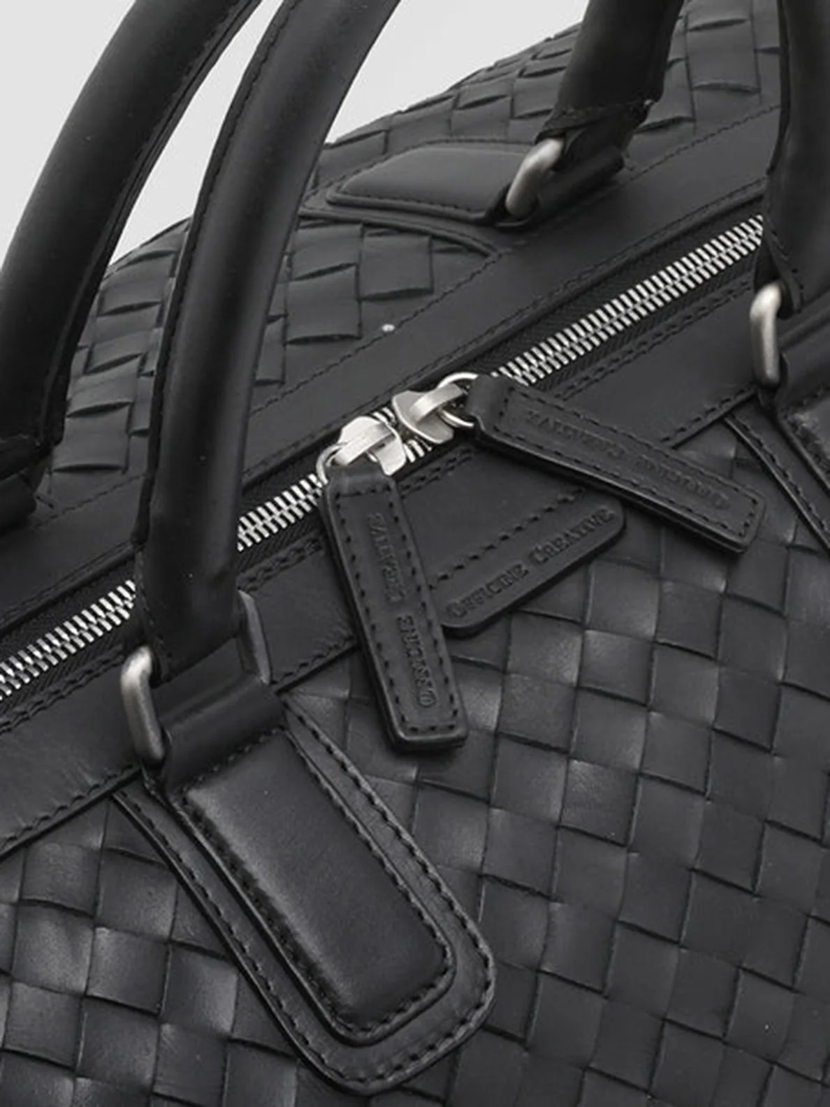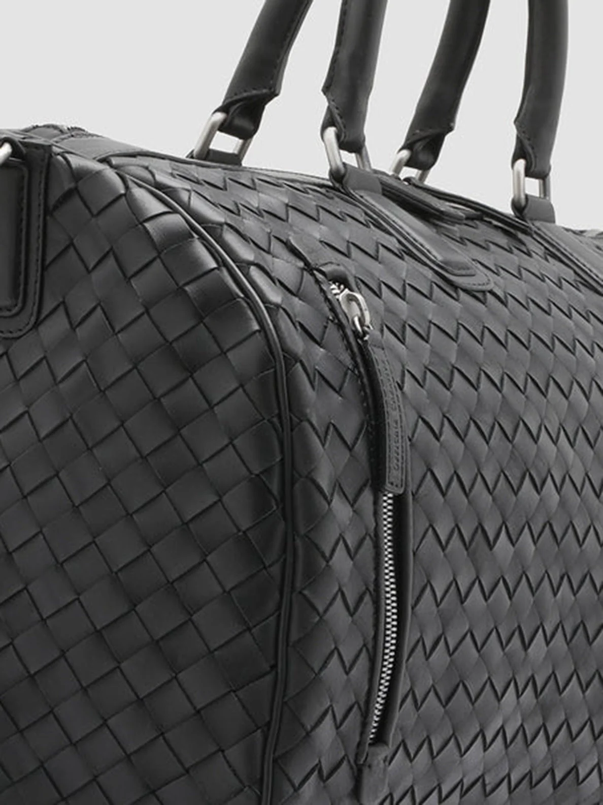Realizzata in pelle intrecciata a mano, la nostra borsa weekender Armor si indossa facilmente grazie ai due manici superiori e alla tracolla regolabile. La zip bidirezionale in metallo color argento che si apre sullo spazioso scomparto principale e la zip verticale sul davanti fanno della Armor l’accessorio ideale per le fughe del fine settimana. CODE: ARMOR/01 GAMBLING NERO