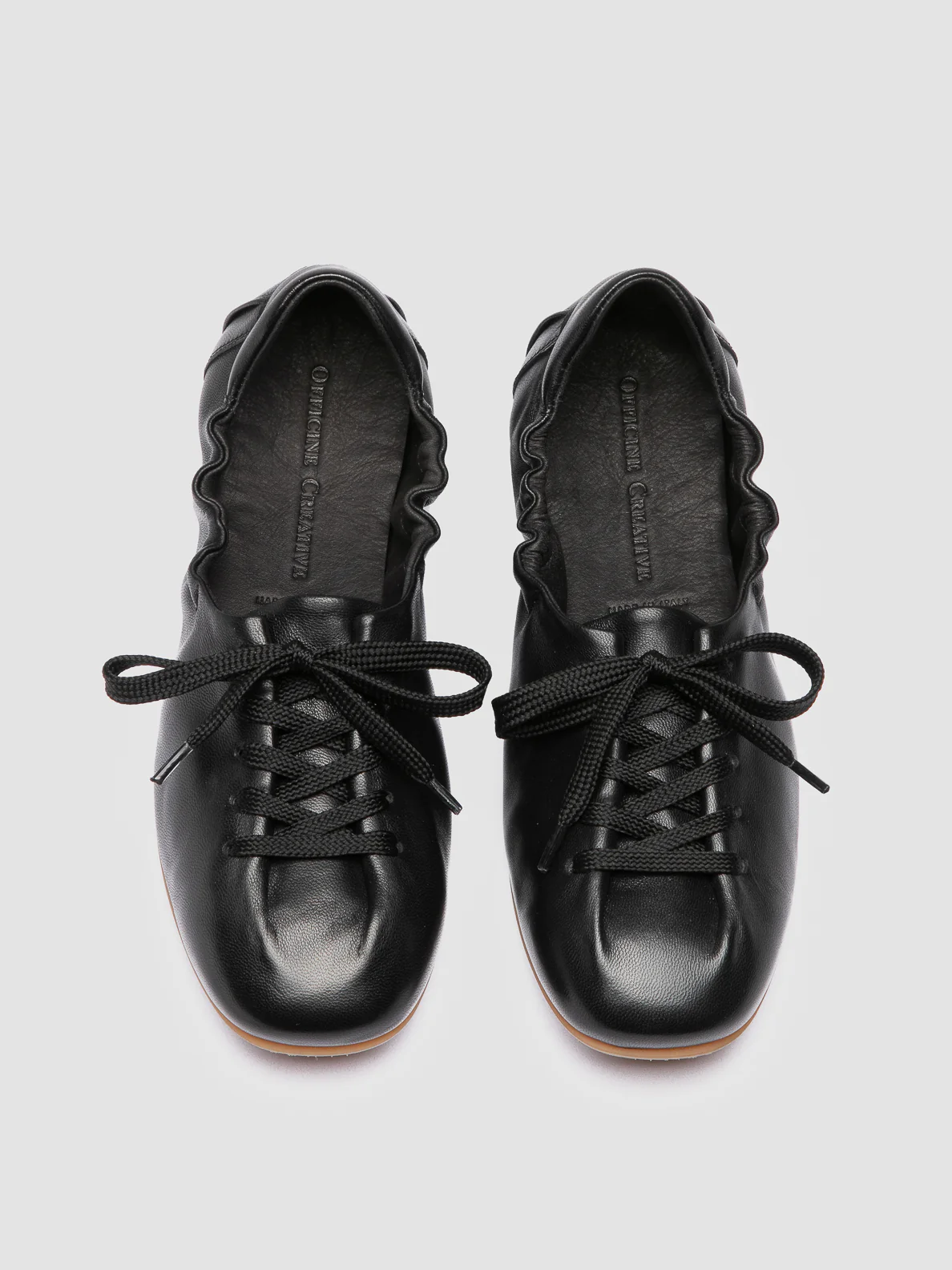 Ispirate alla flessibilità di una ballerina, le sneaker Ballet 101 sono realizzate a mano in morbida pelle nera e presentano una tomaia arricciata con chiusura stringata che avvolge il piede e una suola in gomma leggera per un look elegante da indossare tutti i giorni.