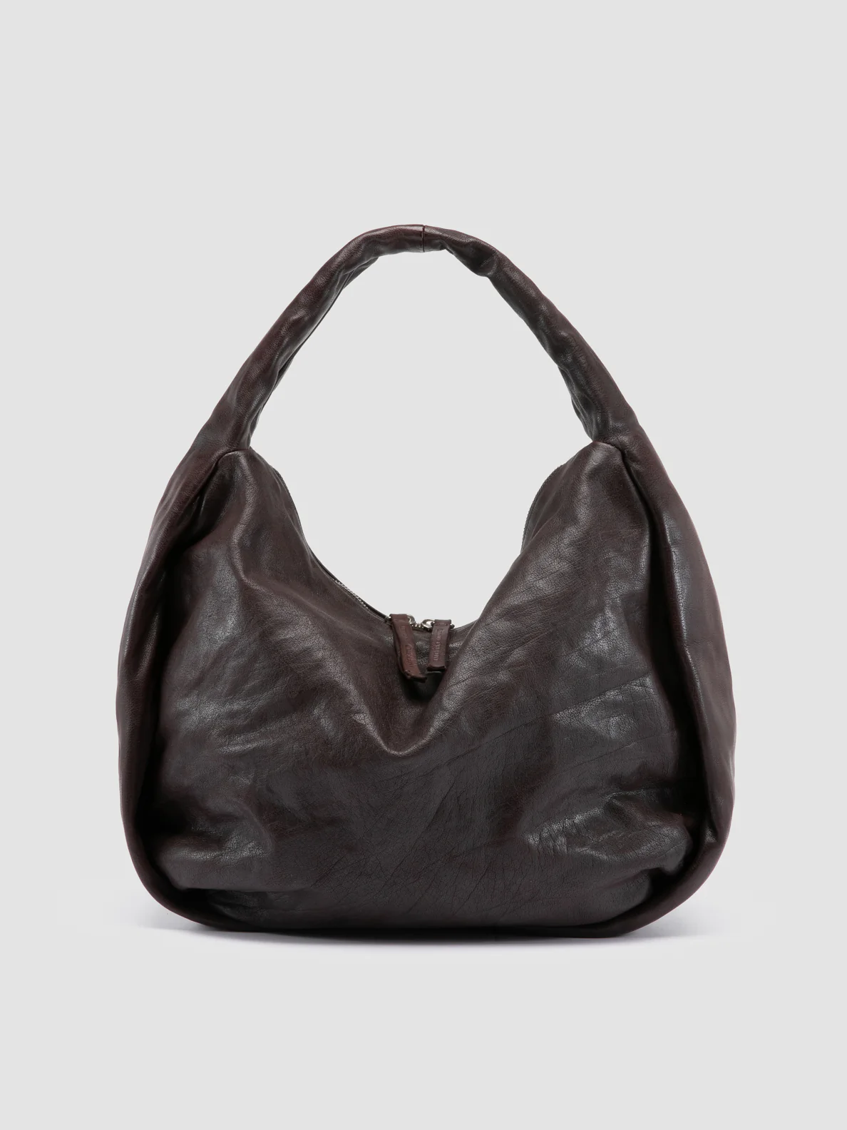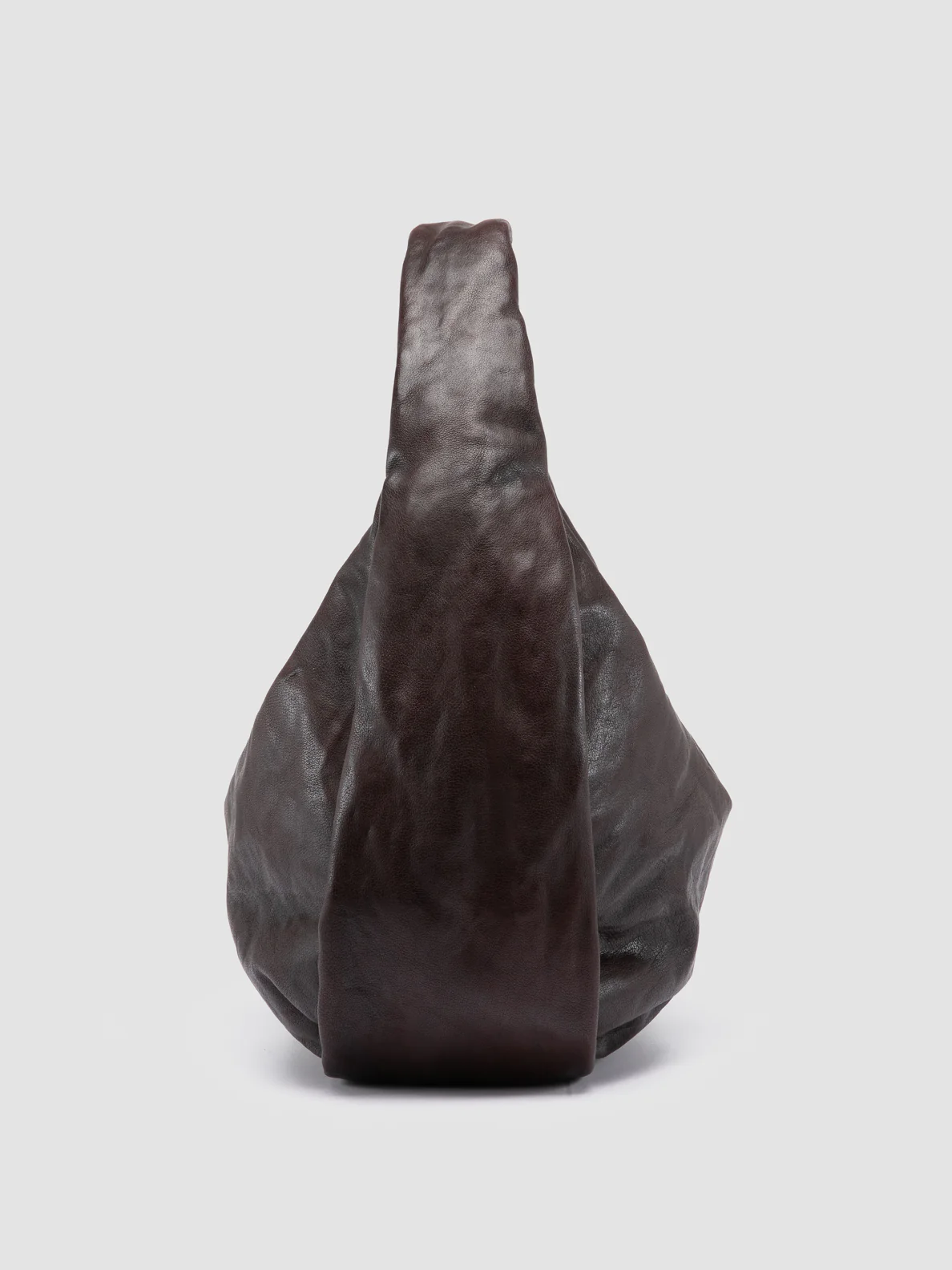 The Bolina 48 bag in black leather features a handwoven silhouette enhanced by a thick handle that lends a sculptural appearance to the design. Spacious and lined in soft leather, the interior is closed by a double zipper.