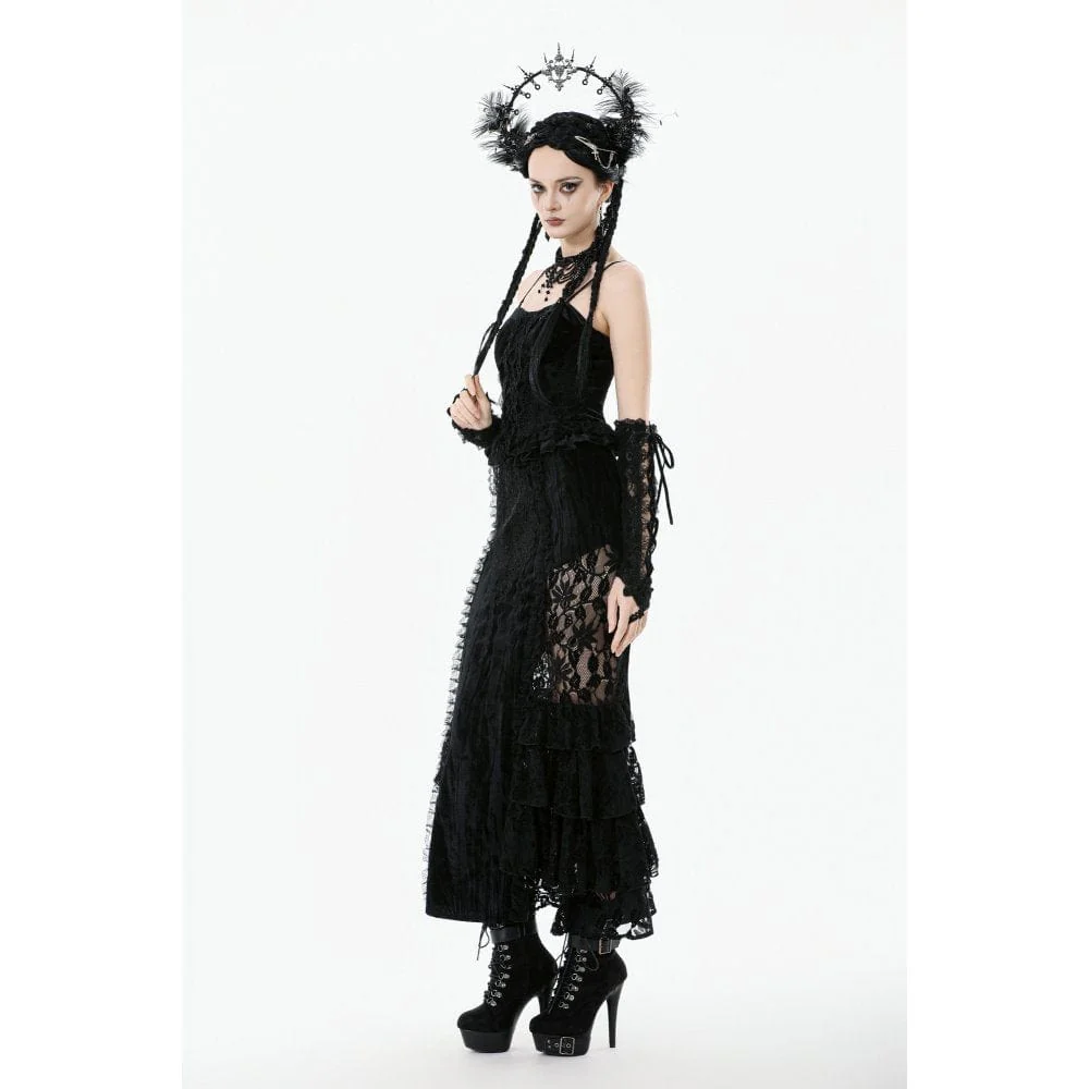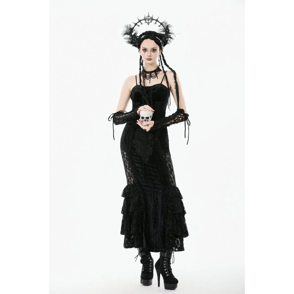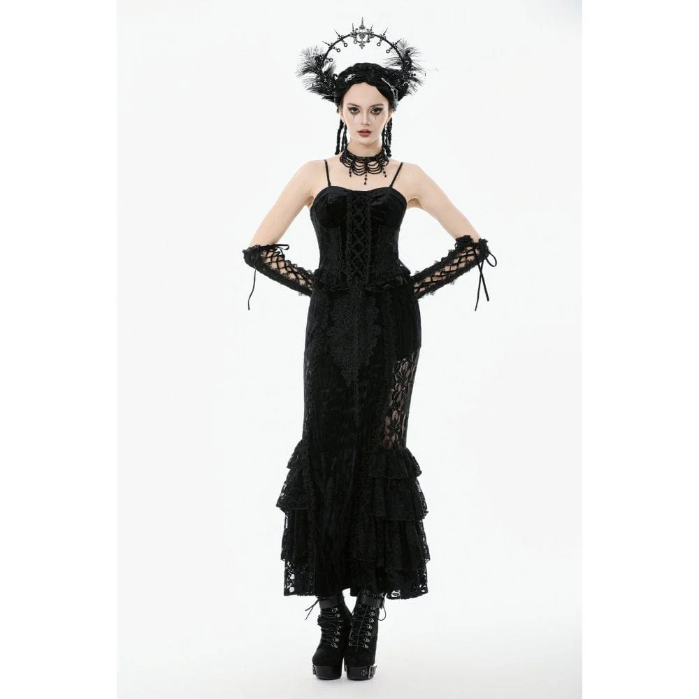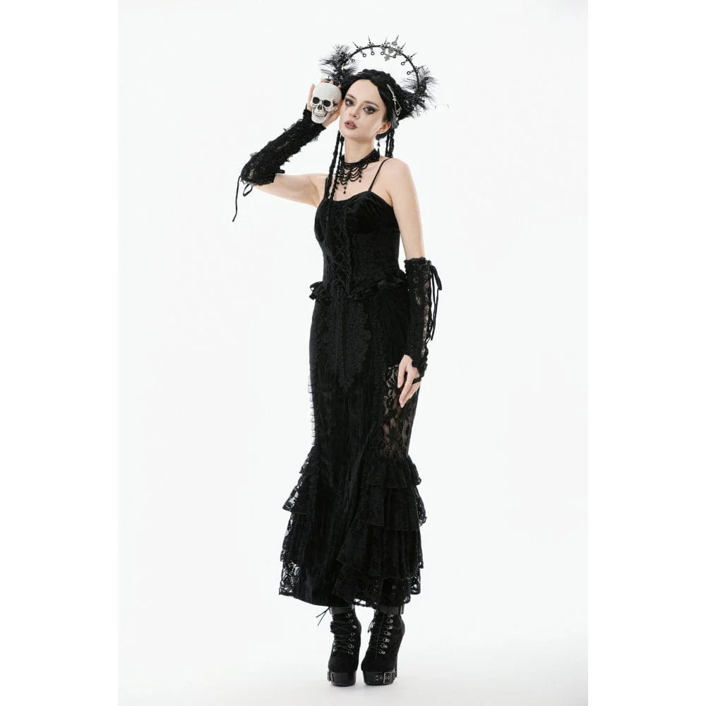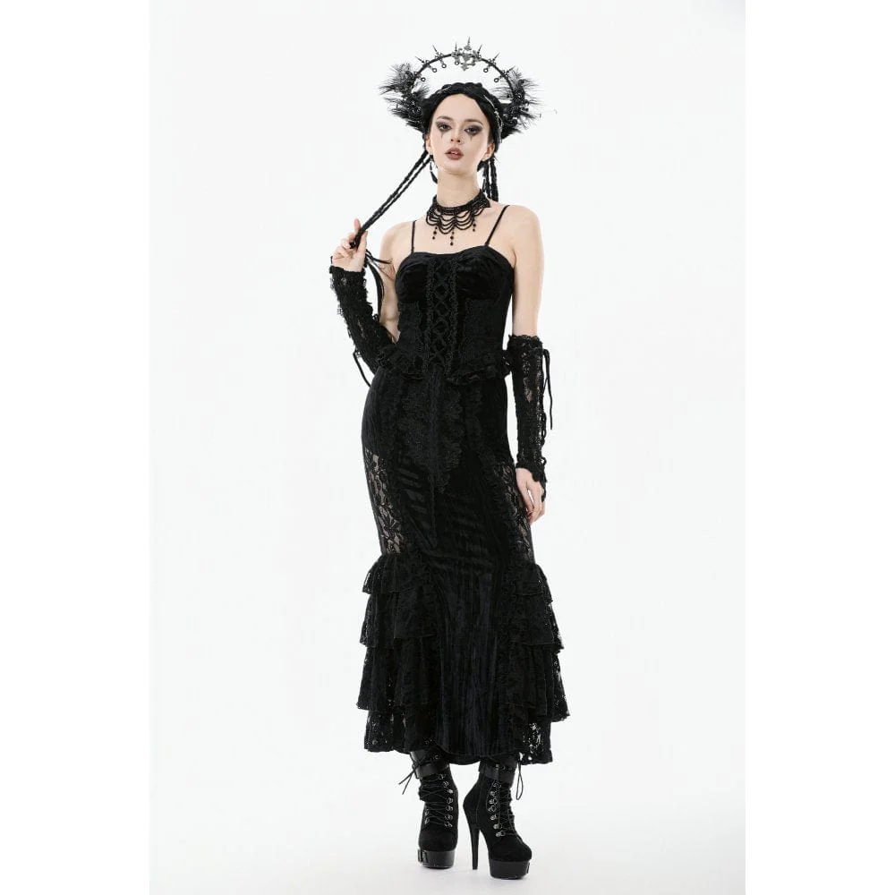Realizzato in lussuoso velluto, questo bustier gotico presenta una parte anteriore arricciata con dettagli in pizzo al centro per una vestibilità raffinata e regolabile. I bordi e le decorazioni in pizzo su entrambi i lati aggiungono un’eleganza intricata, mentre l’orlo è impreziosito da volant in velluto e pizzo a strati per un tocco romantico. Il design arricciato sul retro garantisce flessibilità e comfort.