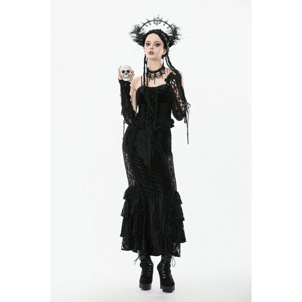 Recensisci per primo “Bustino in velluto con volant ricamato gotico da donna”