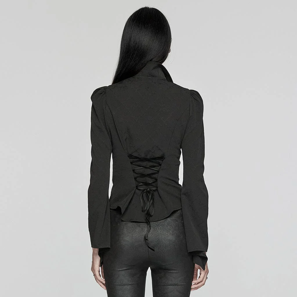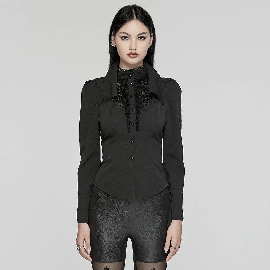 Esalta il tuo guardaroba gotico con la camicia da donna Gothic Puff Sleeved Lace Splice, un capo sorprendente che combina intricatamente elementi gotici classici con la sofisticatezza moderna. Realizzata in tessuto anelastico di alta qualità e decorata con pizzo delicato, questa camicia è un vero capo statement che incarna sia l’eleganza che il fascino gotico.