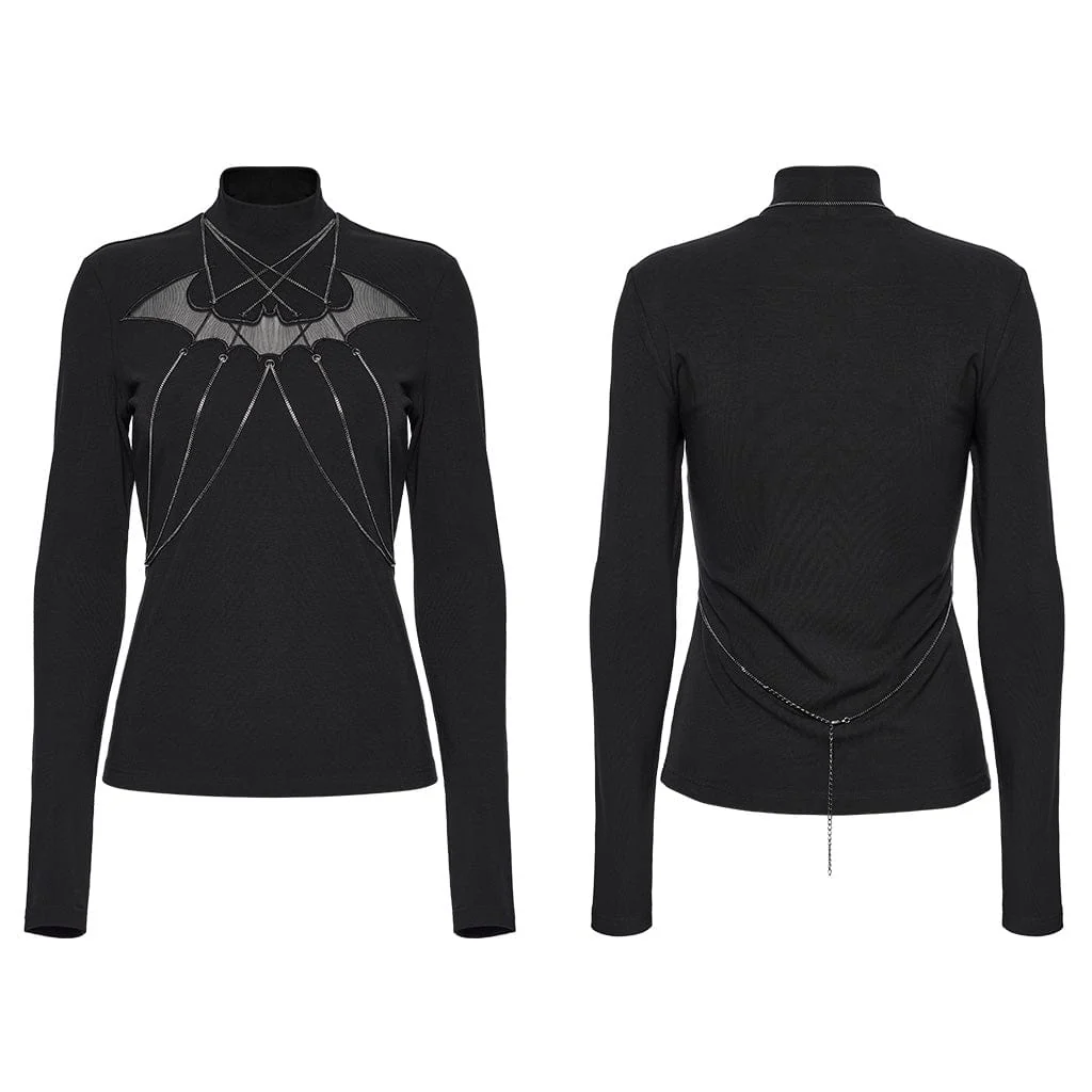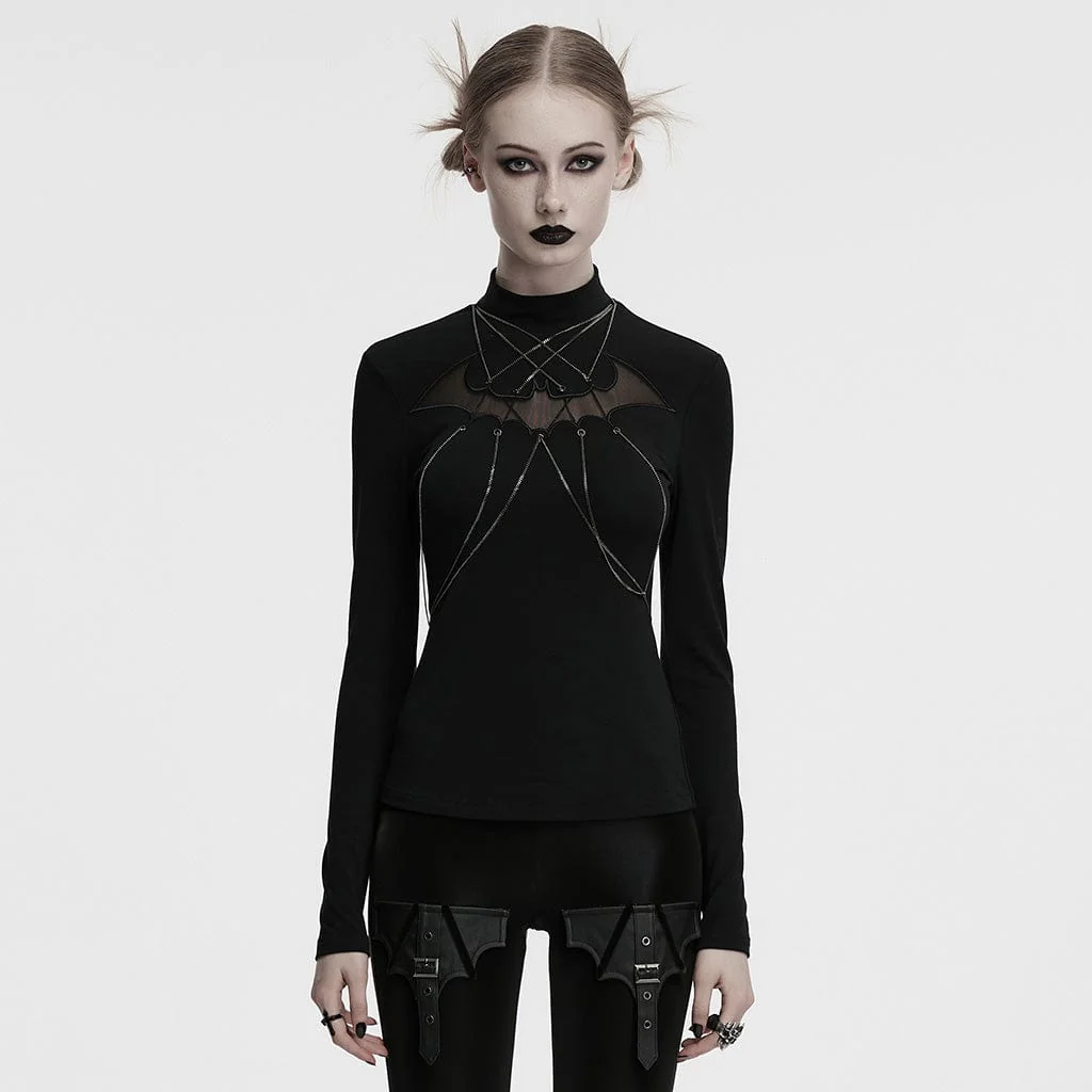 Aggiungi un tocco dark al tuo guardaroba con la camicia da donna con colletto alto in stile gotico e maglia a maglie a pipistrello. Realizzata in un morbido tessuto a maglia spesso ed elastico, questa camicia offre una silhouette comoda ma aderente che avvolge il corpo, garantendo flessibilità. Il materiale di alta qualità garantisce una sensazione liscia e morbida, perfetta da indossare a strati o da sola.