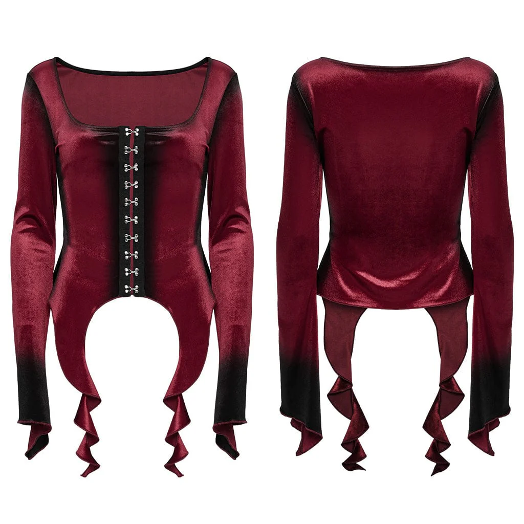 Aggiungi un tocco di sofisticatezza dark al tuo guardaroba con la Women’s Gothic Irregular Gradient Velvet Shirt, dove il grunge gotico incontra l’elegante stile punk rock. Realizzata in morbido ed elastico velluto, questa camicia aderente si adatta perfettamente alla tua figura, offrendo sia comfort che un look elegante e lusinghiero.