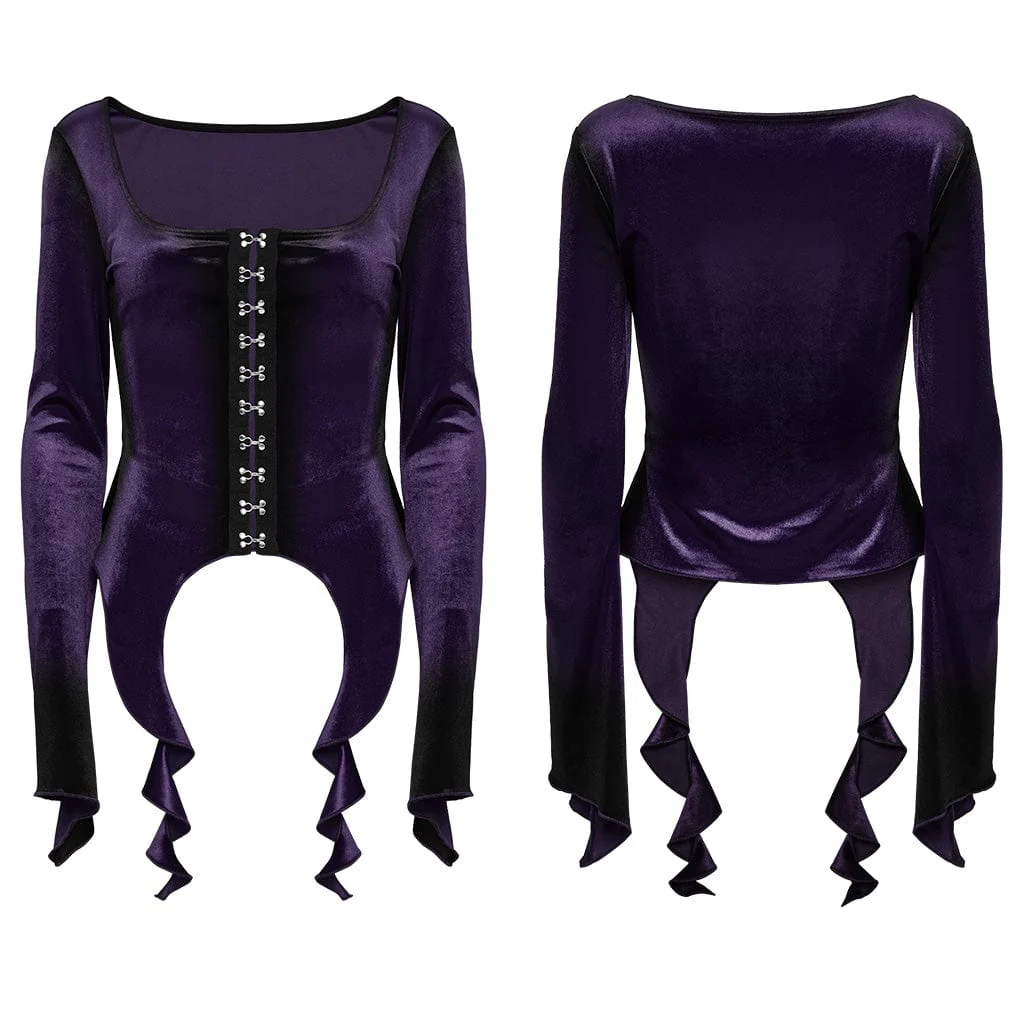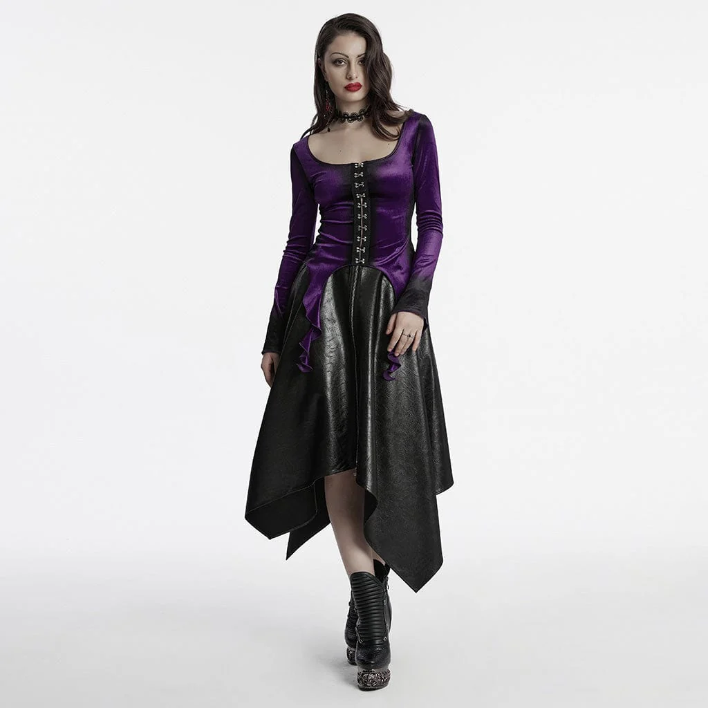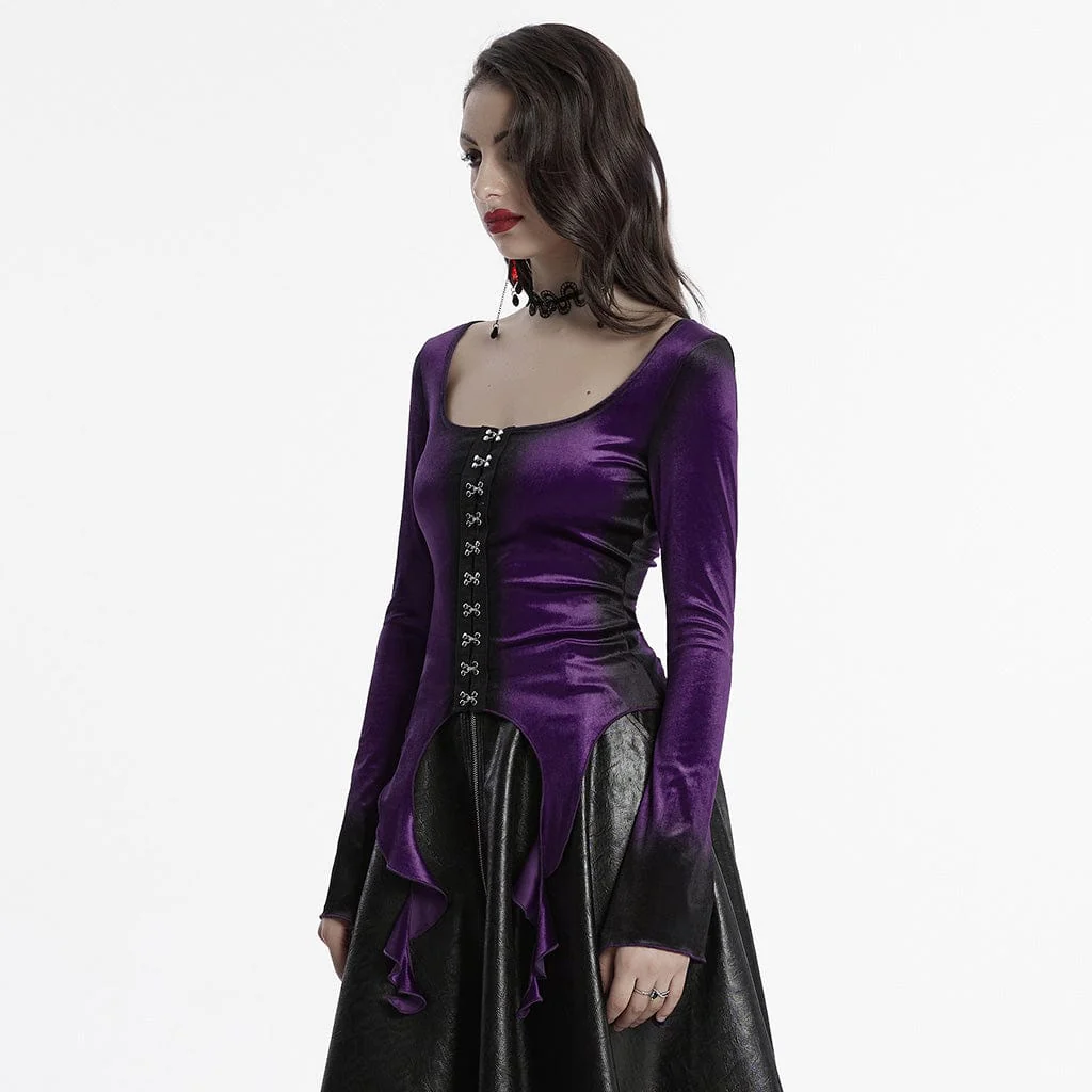 Camicia da donna in velluto sfumato irregolare gotico viola