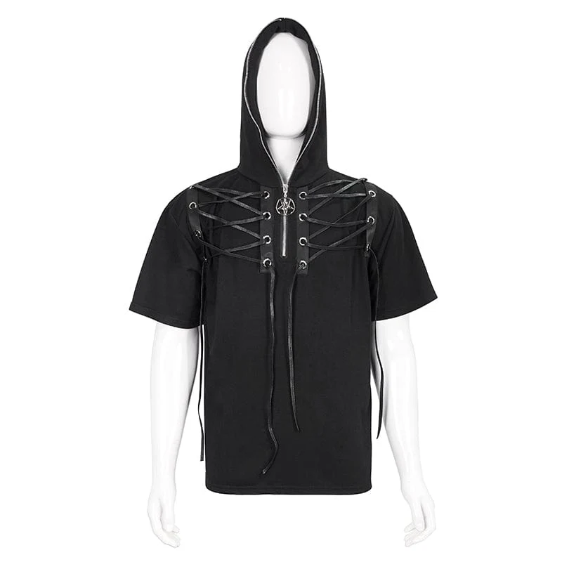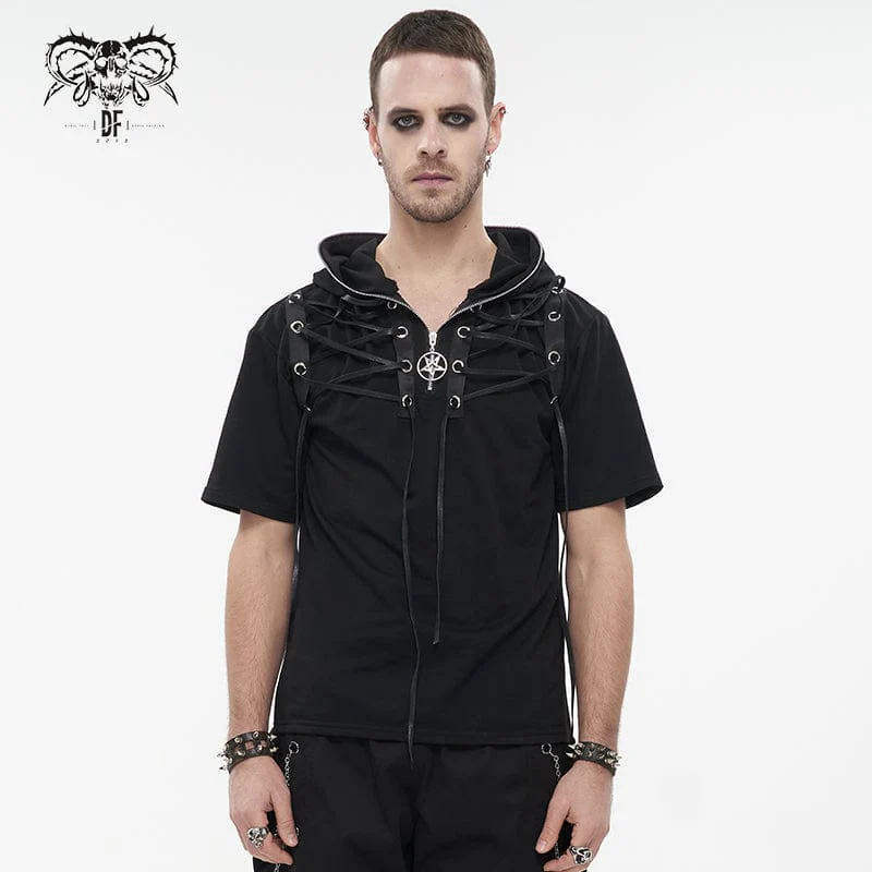 Camicia da uomo con cerniera a stella punk con cappuccio