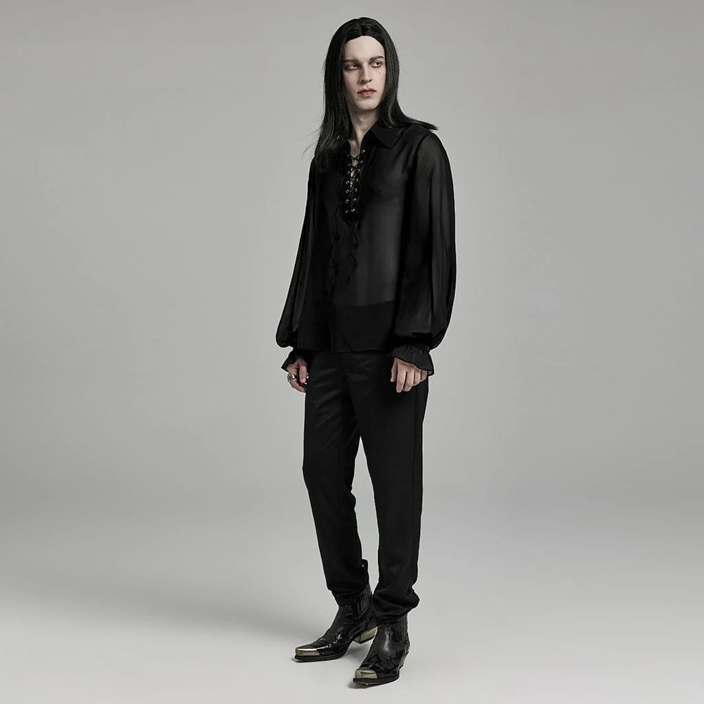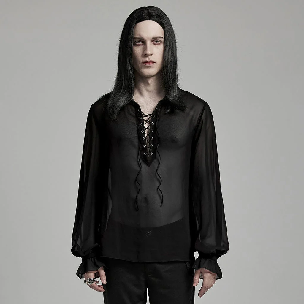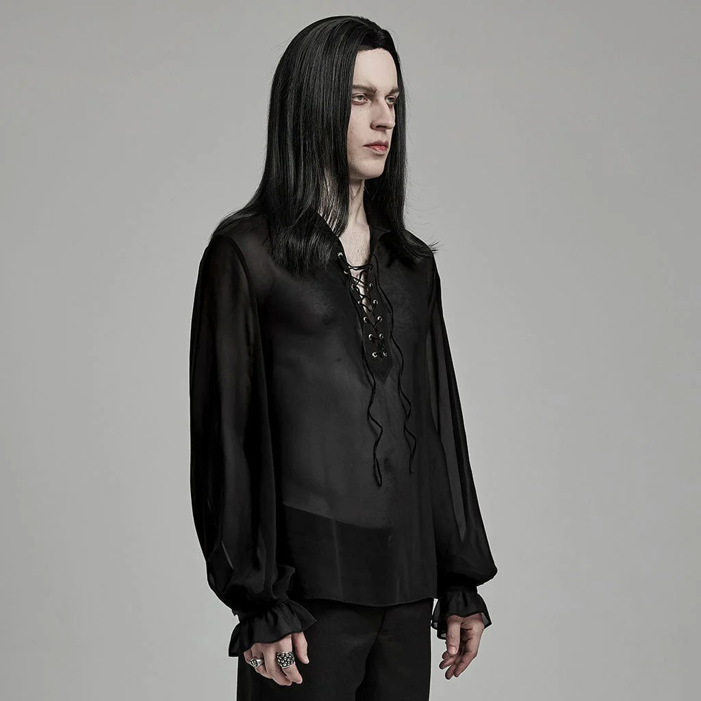 Questa camicia da uomo in chiffon velato con lacci gotico è realizzata in delicato tessuto di chiffon, creando un look etereo e romantico.