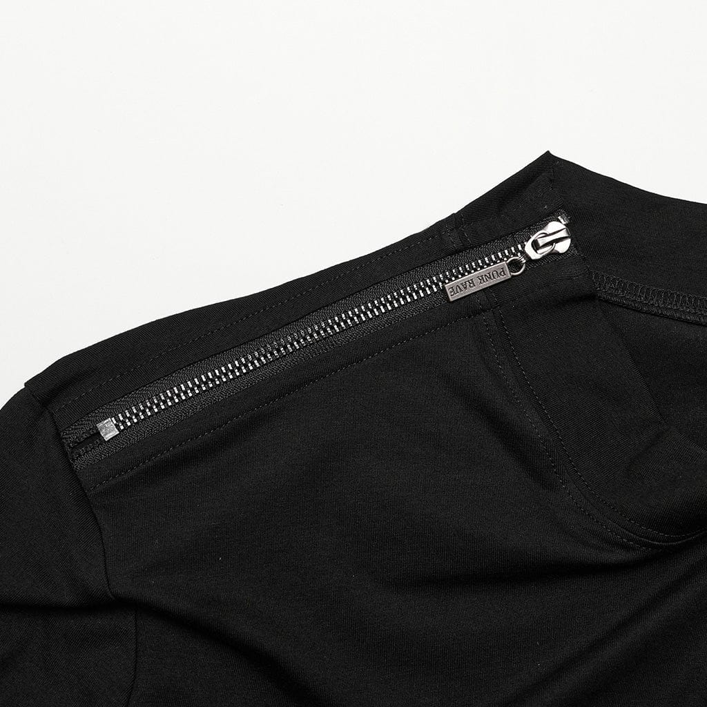 La maglia è realizzata in maglia elasticizzata e tessuto gommato twill. La spalla ha una cerniera in metallo per indossarla facilmente. I rivetti in metallo qualificati e il design a motivi geometrici aggiungono consistenza.