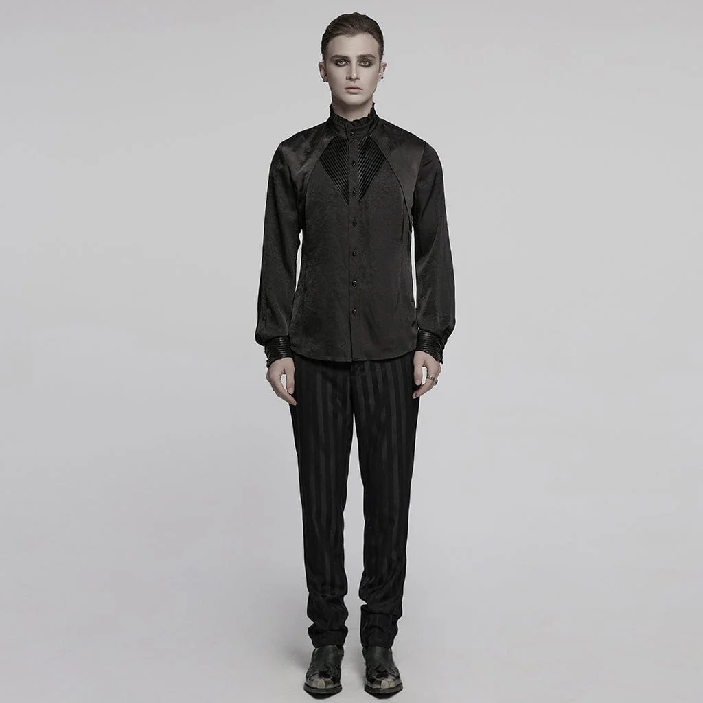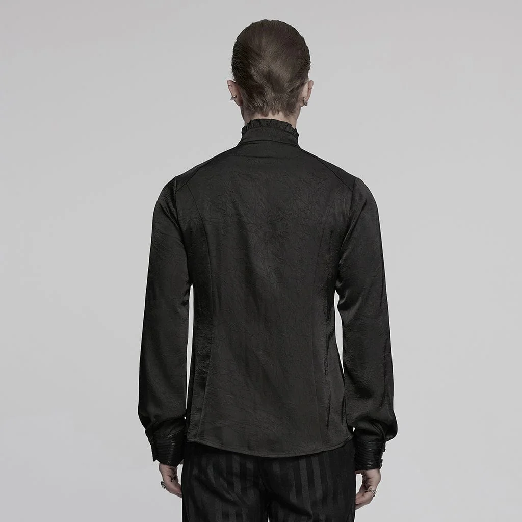 Camicia da uomo in stile gotico con arricciature e colletto rialzato, nera