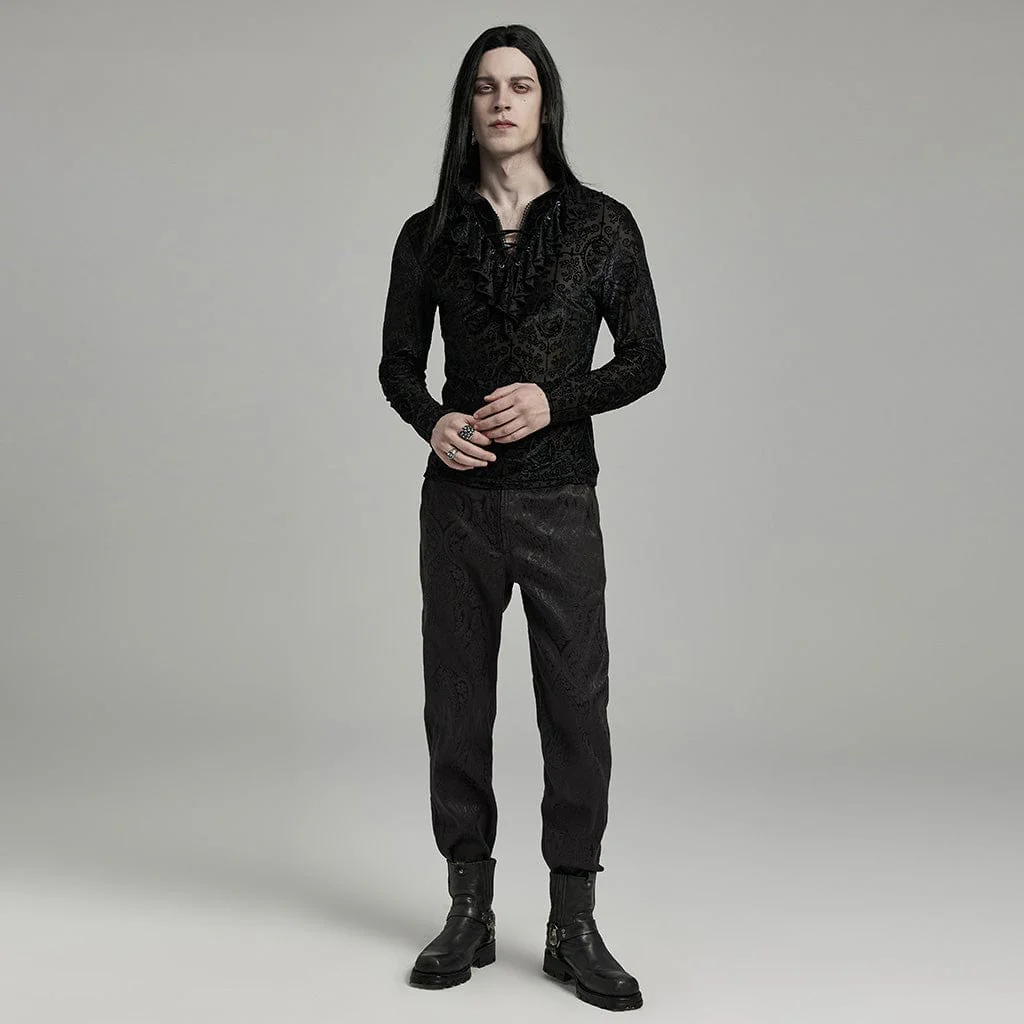 Entra nel regno dell’eleganza oscura con la nostra camicia floccata con volant e colletto rialzato gotico da uomo, un capo che incarna la raffinatezza e lo stile gotico. Realizzata in velluto goffrato, questa camicia vanta una texture lussuosa che aggiunge profondità e ricchezza al suo design.