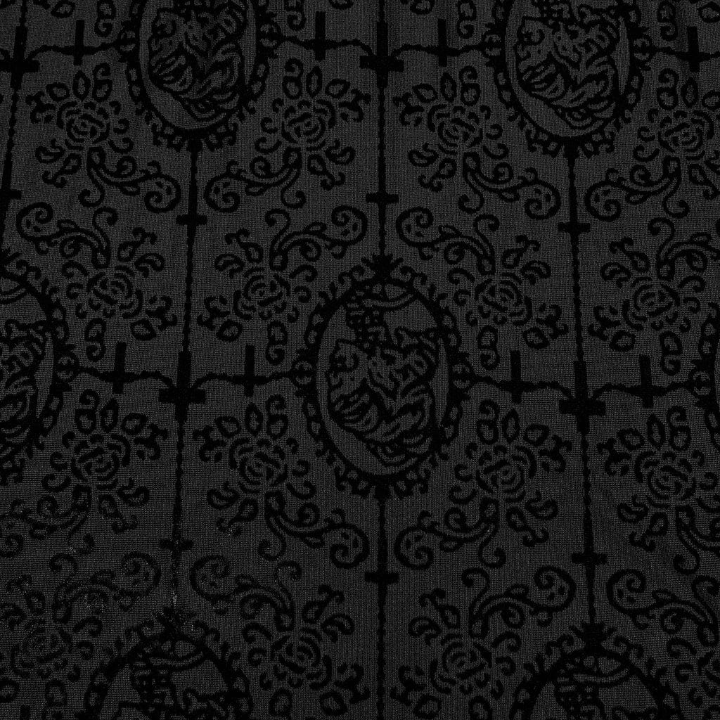 La silhouette aderente della maglietta assicura un look lusinghiero che accentua il tuo fisico, mentre il buon tessuto elastico offre comfort e facilità di movimento. Che tu stia girando per le strade o partecipando a un evento gotico, questa maglietta è progettata per fare una dichiarazione.