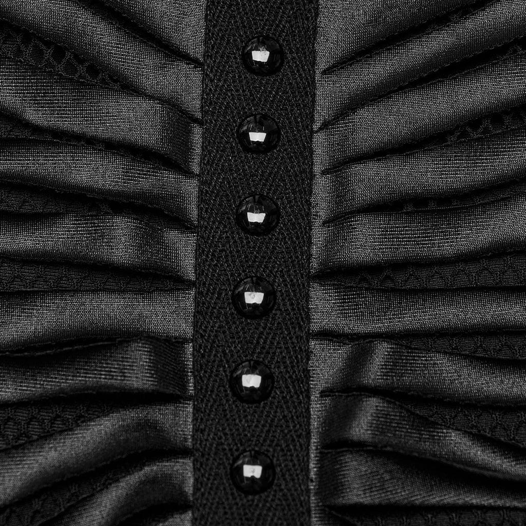 Questa canotta punk è realizzata in tessuto a maglia gommato e patchwork con rete. Il pannello frontale è progettato con un taglio di fiori bruciati. Silhouette aderente e buon tessuto elastico.
