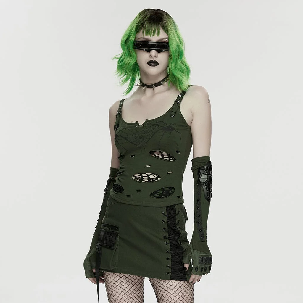 Abbraccia il lato grezzo della sottocultura punk con questa straordinaria canotta da donna con stampa Punk Spiders&Web, un capo che unisce la grinta del punk rock a un tocco dark e suggestivo. Realizzata in morbido cotone elasticizzato e poliestere, presenta una silhouette aderente che avvolge il corpo, mentre la stampa frontale con ragni e ragnatele evoca il fascino inquietante dell’estetica gotica punk.