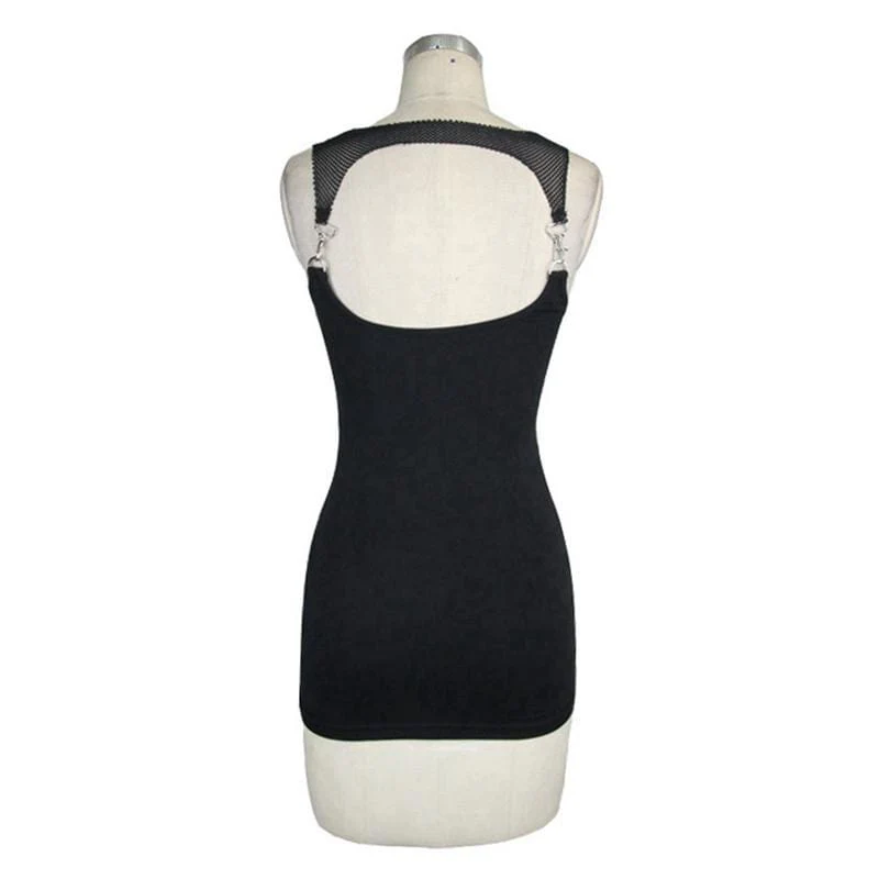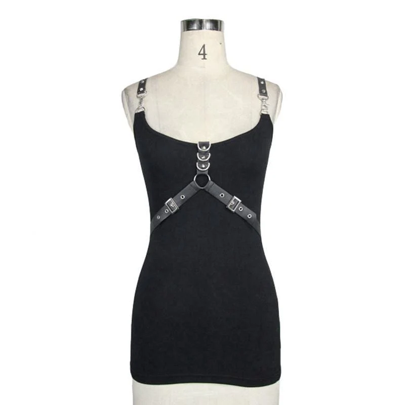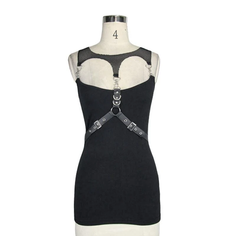 Descrizione: Questa t-shirt è stata progettata per darti due stili con un solo capo. Il corpetto del capo ha anelli a D attaccati ad esso che vengono utilizzati per creare due look completamente diversi per la stessa t-shirt. Viene fornito con due cinturini in pelle e anche uno spallaccio in rete. Questi possono essere scambiati e attaccati al capo per creare due look unici. La parte anteriore del capo presenta rifiniture in pelle.
