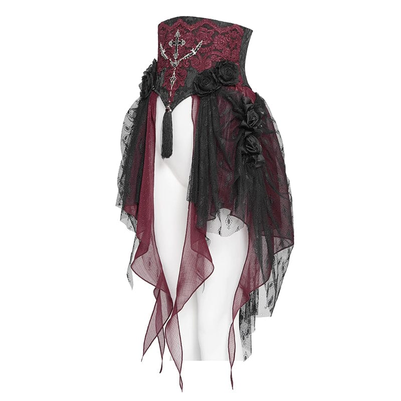 Gli ornamenti sui lati del corsetto sono come un mazzo di fiori indisturbato in un angolo di cimitero: sobrio ma intrinsecamente intenso. Indossato, diventa un “contenitore emotivo” tipico dell’estetica dark.