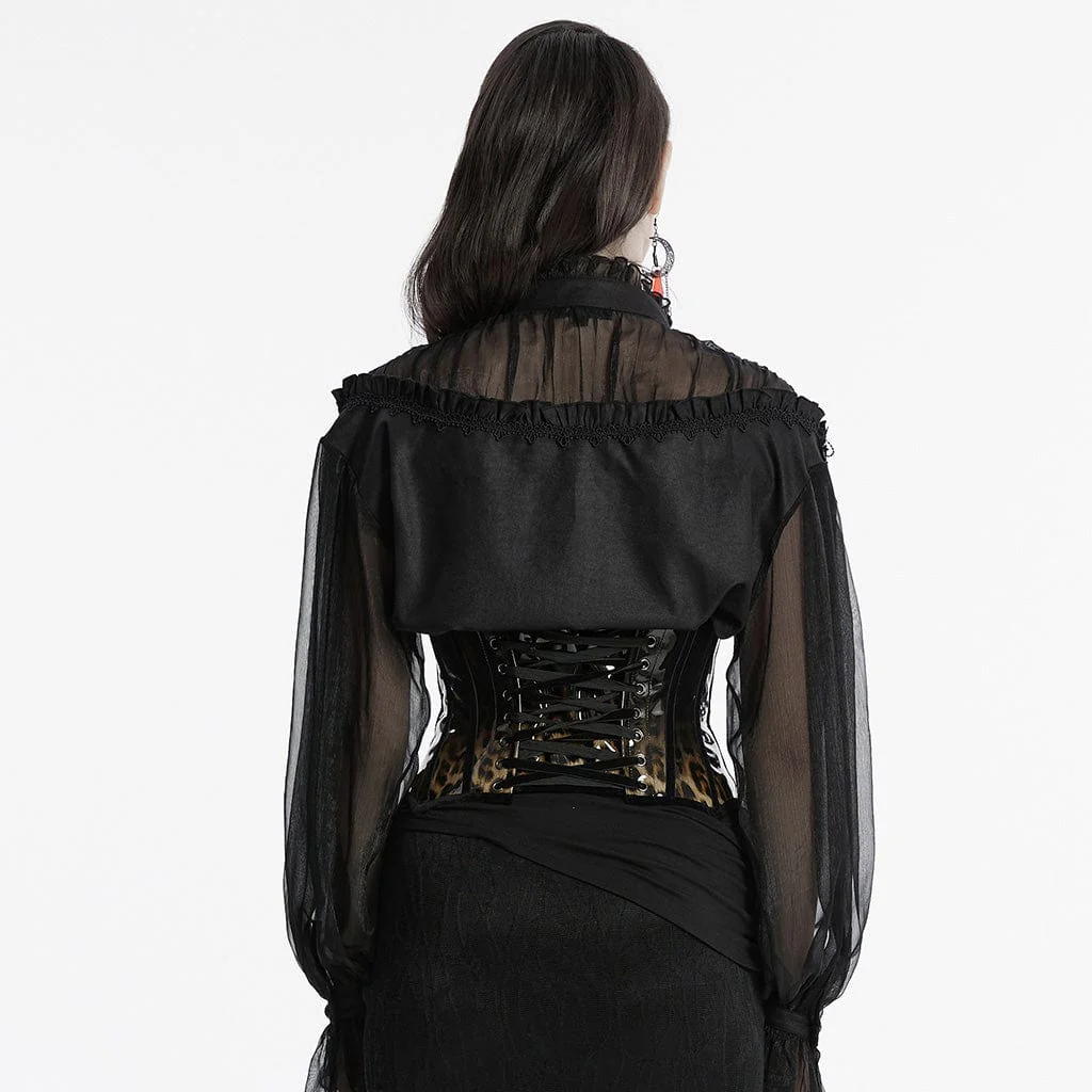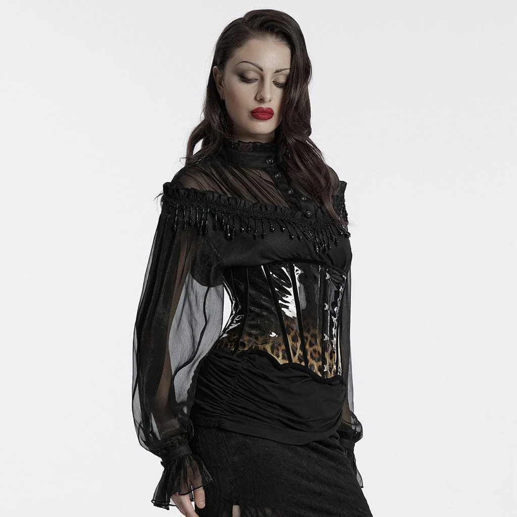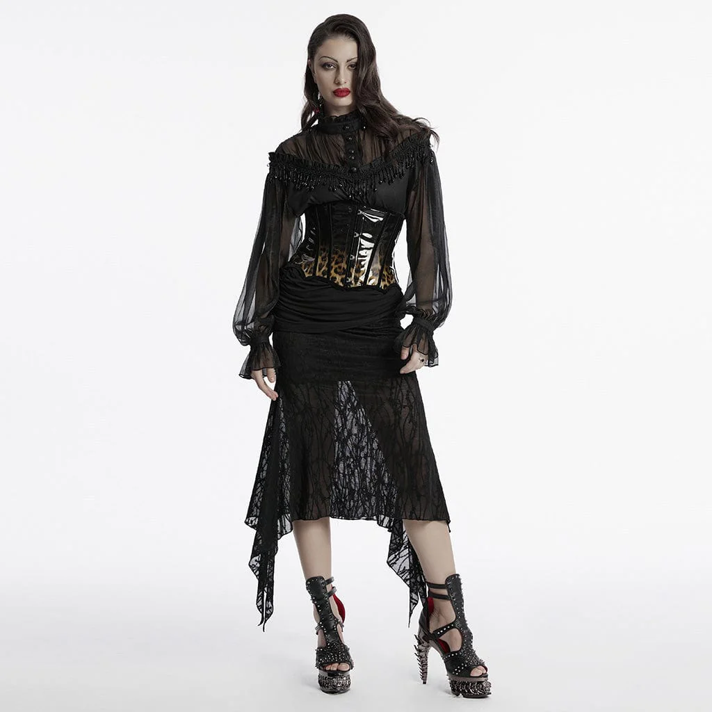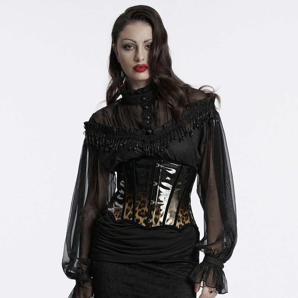 Scatena il tuo lato selvaggio con il corsetto sottoseno in pelle verniciata leopardata gotica da donna, un’audace fusione di eleganza gotica e sfrenato stile punk. Realizzato in pelle verniciata con stampa leopardata sfumata di alta qualità, questo corsetto trasuda sia natura selvaggia che sensualità, rendendolo il capo perfetto per il tuo guardaroba alternativo.