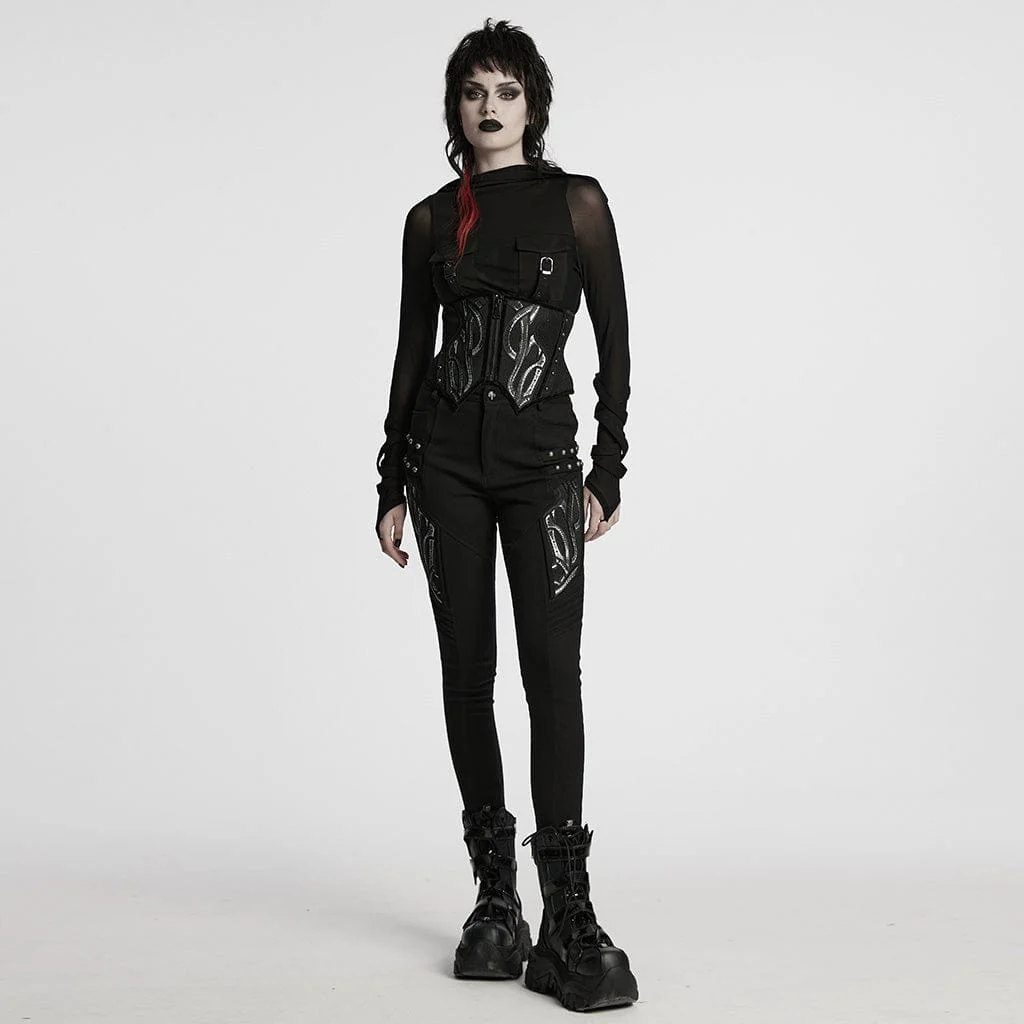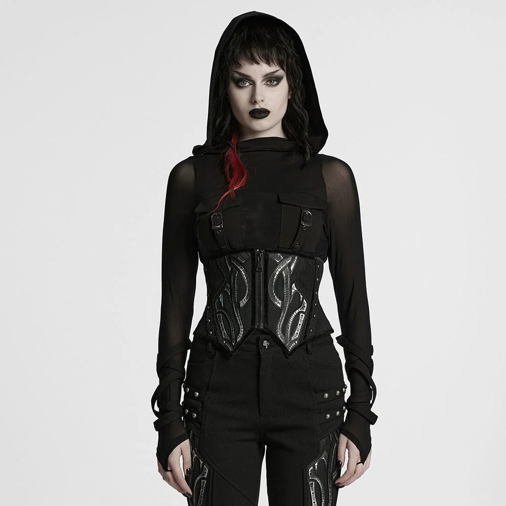 Scatena il guerriero cyberpunk che è in te con il corsetto sottoseno Cyberpunk Irregular Studded Mesh da donna. Realizzato in tessuto a rete traspirante, questo corsetto presenta una silhouette attillata che stringe la vita, esaltando le tue curve mantenendo il comfort. Il design del corsetto non ha tessuto elastico, garantendo una vestibilità aderente e strutturata per un look futuristico e audace.