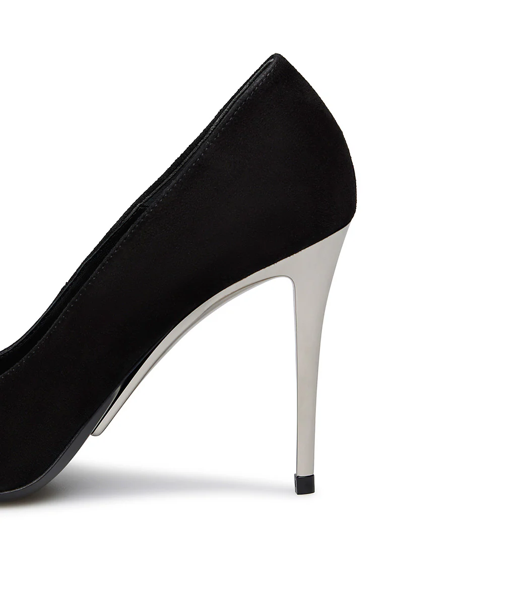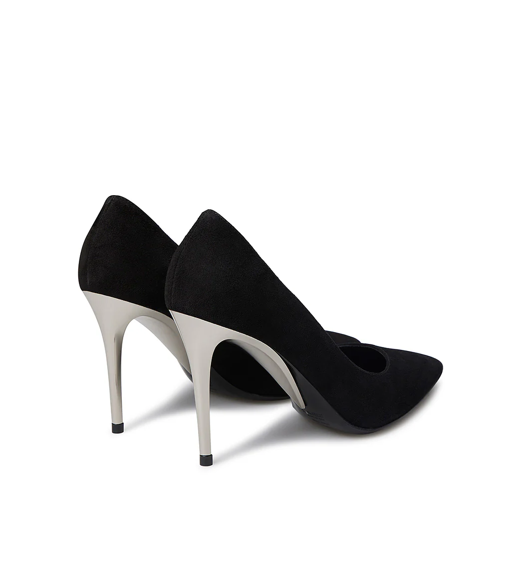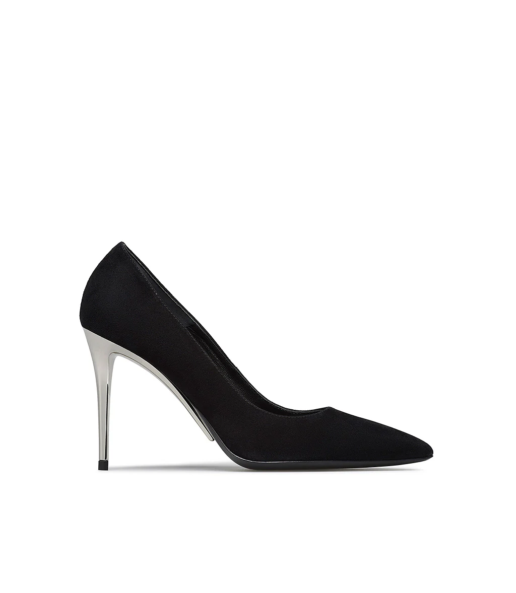 Recensisci per primo “Décolleté in camoscio nero con tacco in metallo argento”