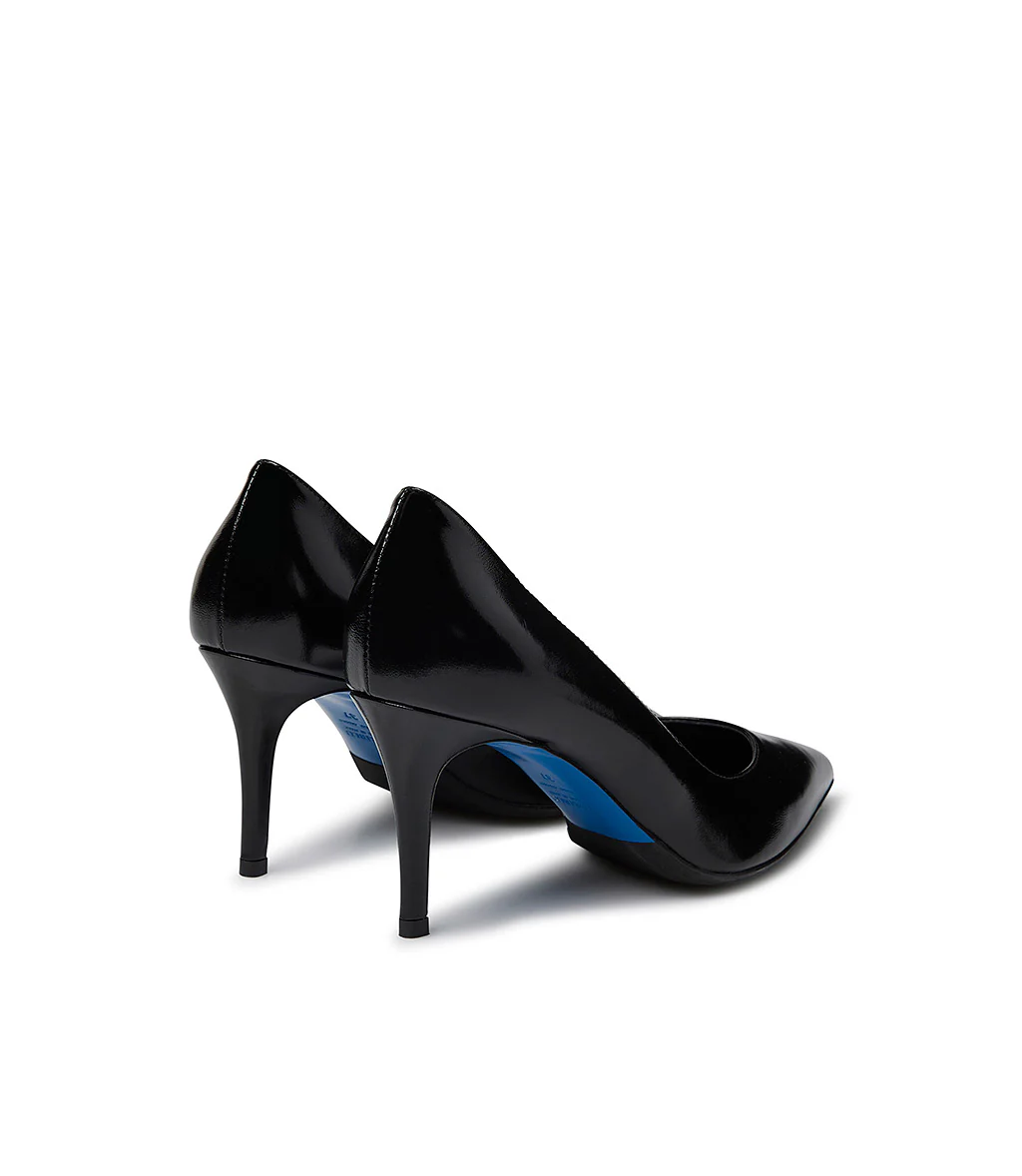 Quintessenza della femminilità, le décolleté non possono mai mancare nel nostro guardaroba. Questo nuovo modello in pregiata pelle lucida nero rivela una silhouette affusolata, un confortevole tacco a spillo e la nostra iconica suola in cuoio blu. Perfette da indossare sia di giorno che di sera.