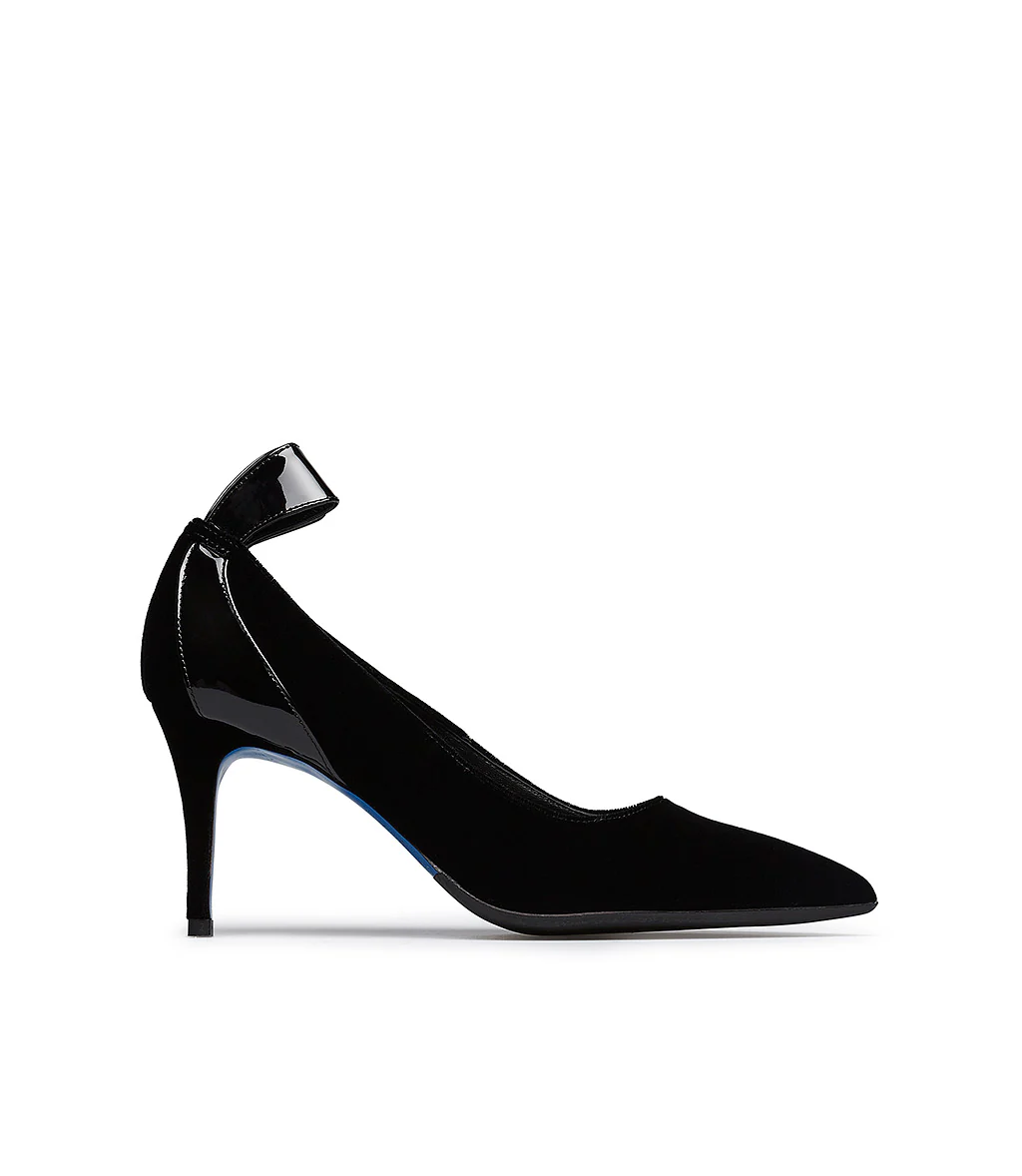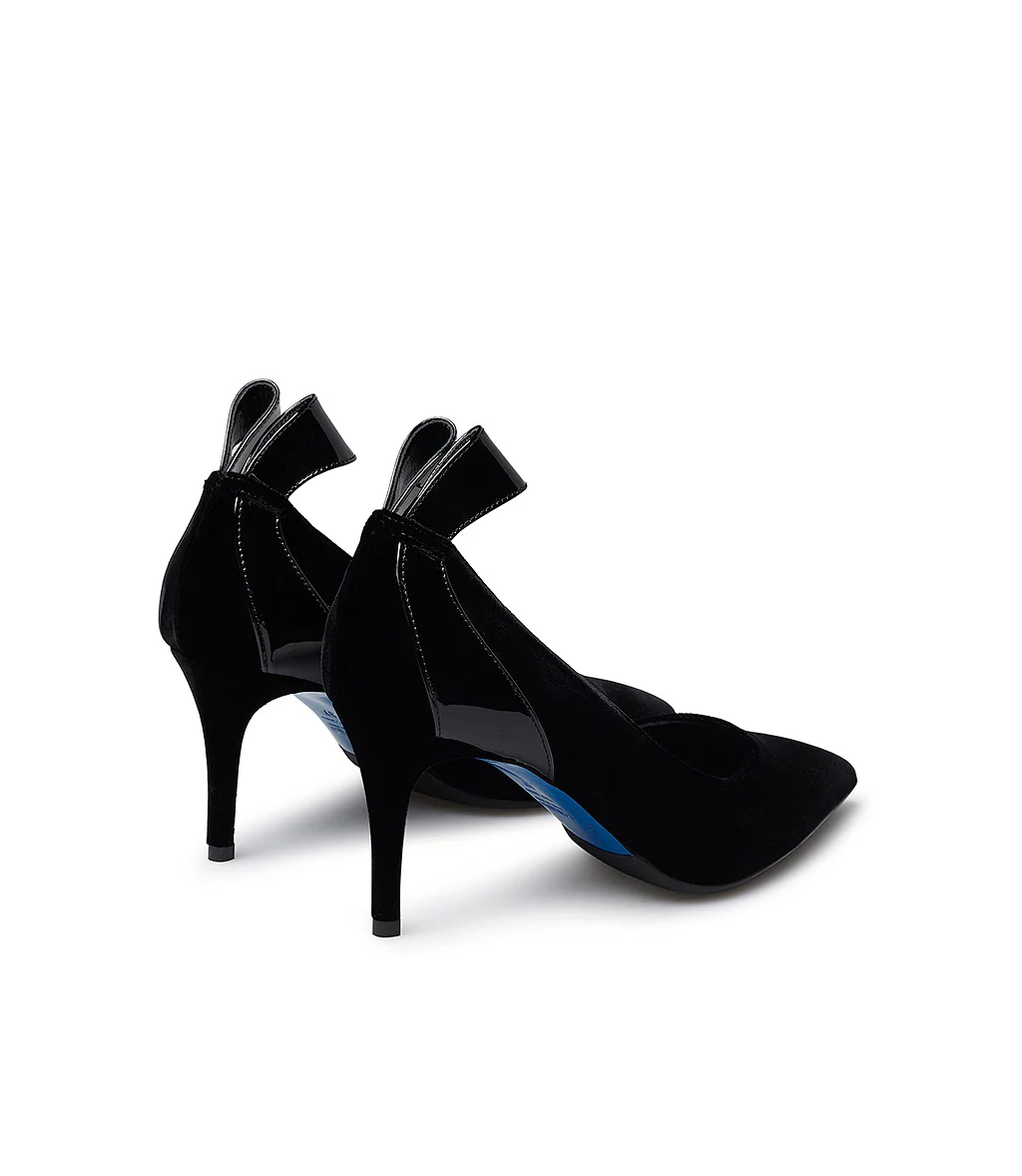 Il design femminile delle nostre décolleté sofisticate è impreziosito dal tocco morbido del velluto che introduce una nota contemporanea alla silhouette senza tempo, definita da un raffinato dettaglio in vernice con decorazione fiocco sul tallone. Tacco a spillo, punta affusolata e iconica suola blu.