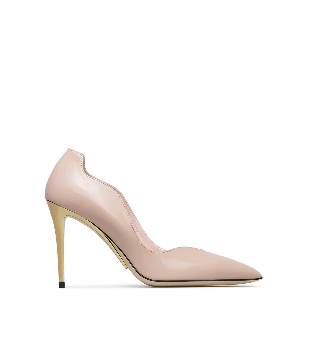 Femminili e raffinate, le nostre décolleté spiccano grazie all’conico design onda. l’eleganza della tomaia in vernice nude, viene esaltata da un vertiginoso tacco scultura in metallo oro. Lasciati sedurre dalle nostre nuove décolleté e abbinale con morbidi pullover e gonne midi per un perfetto mix & match da sfoggiare al prossimo cocktail party.