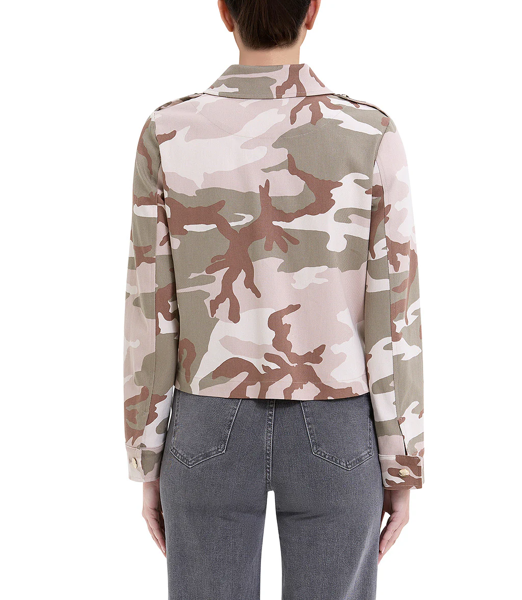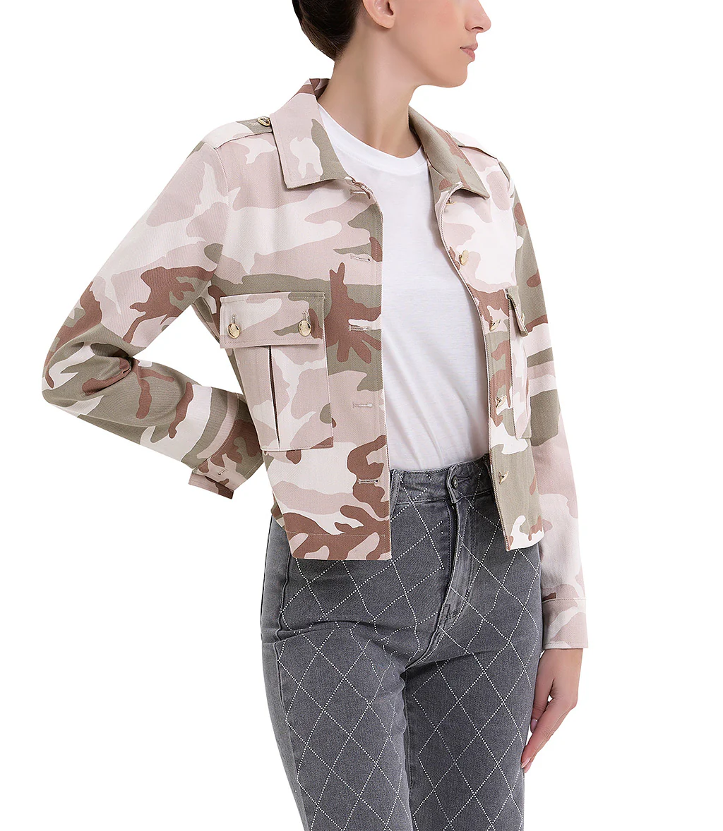 Giacca fantasia militare con tasche frontali e spalline con borchie oro